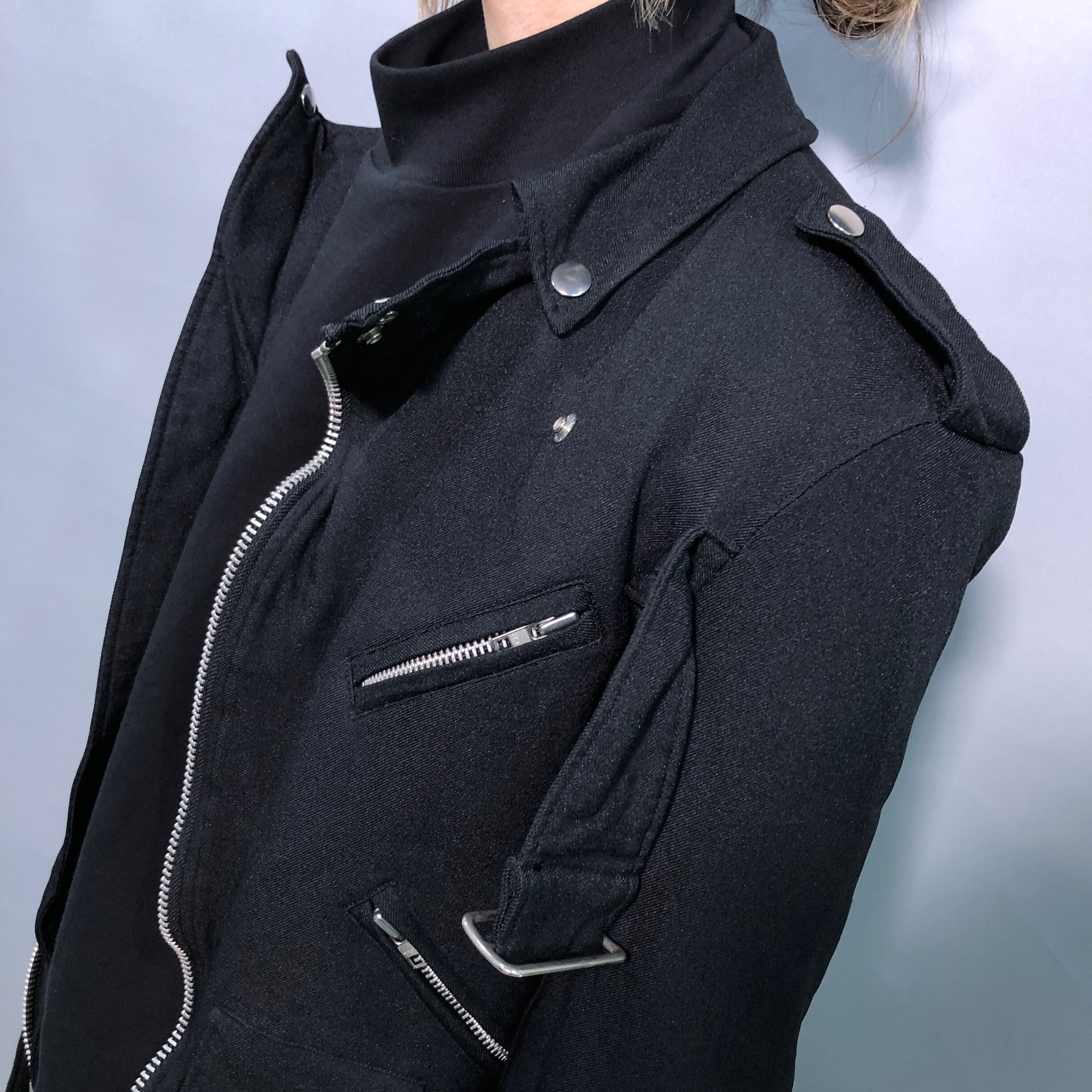 【Comme des Garçons】Black ポリ 縮絨 ライダースコート