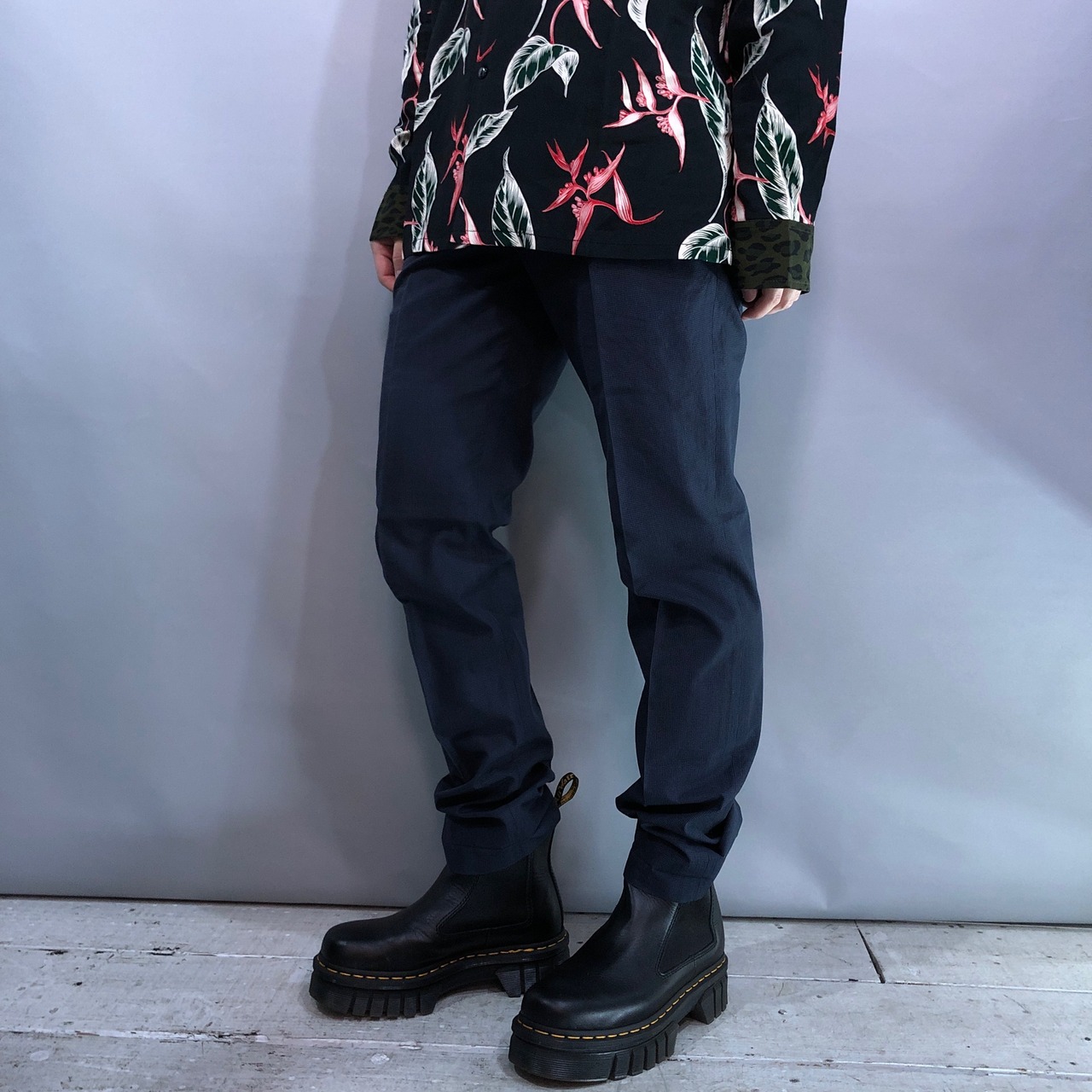 細身の美しいシルエットに、細かい千鳥柄が作り手のこだわりを感じる、オールシーズンコーデの主戦級として活躍いたします。