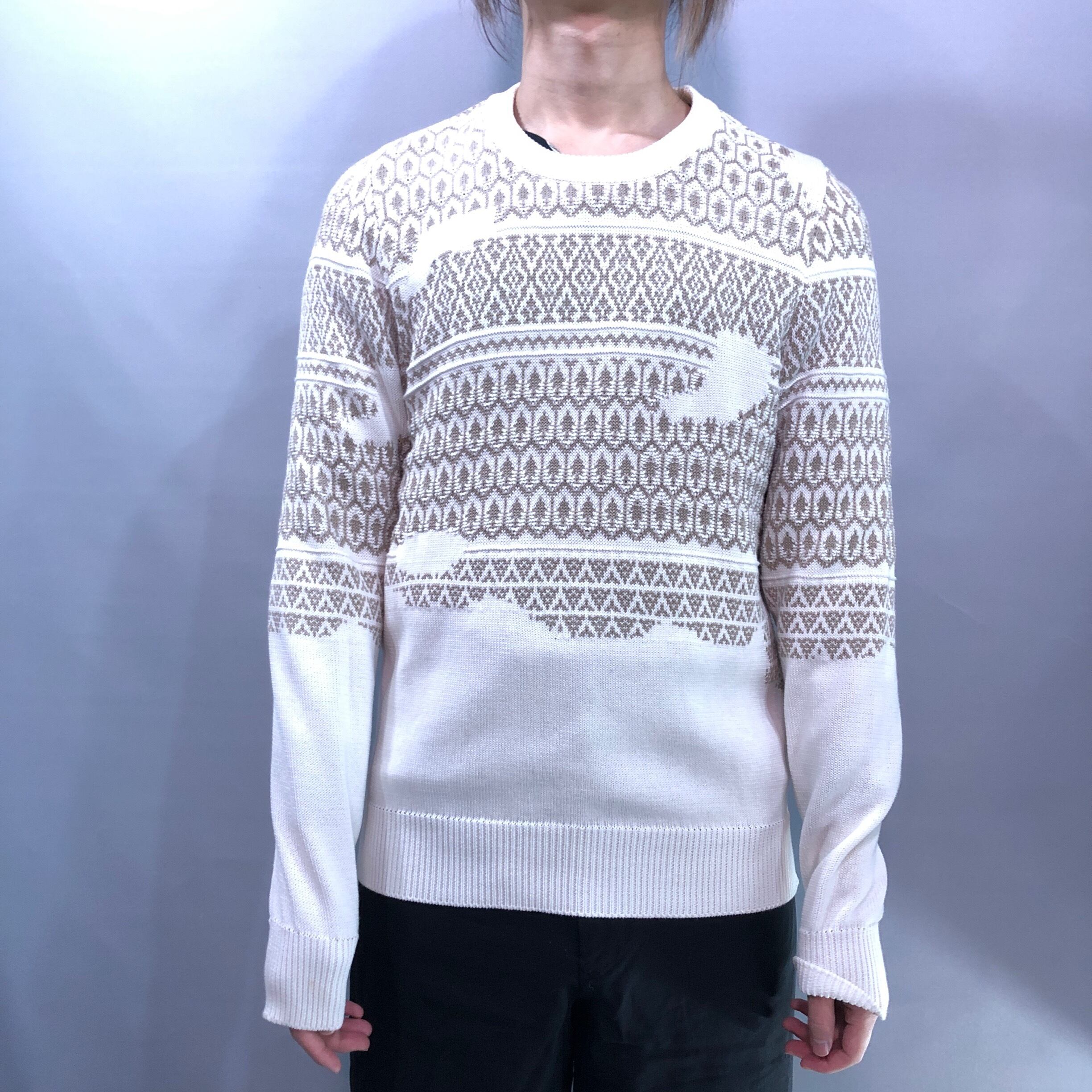 マルジェラらしいノルディック柄が唯一無二のニットソー。コットン素材の優しい肌触りでどこか温かみやノスタルジックな雰囲気が感じる逸品です。