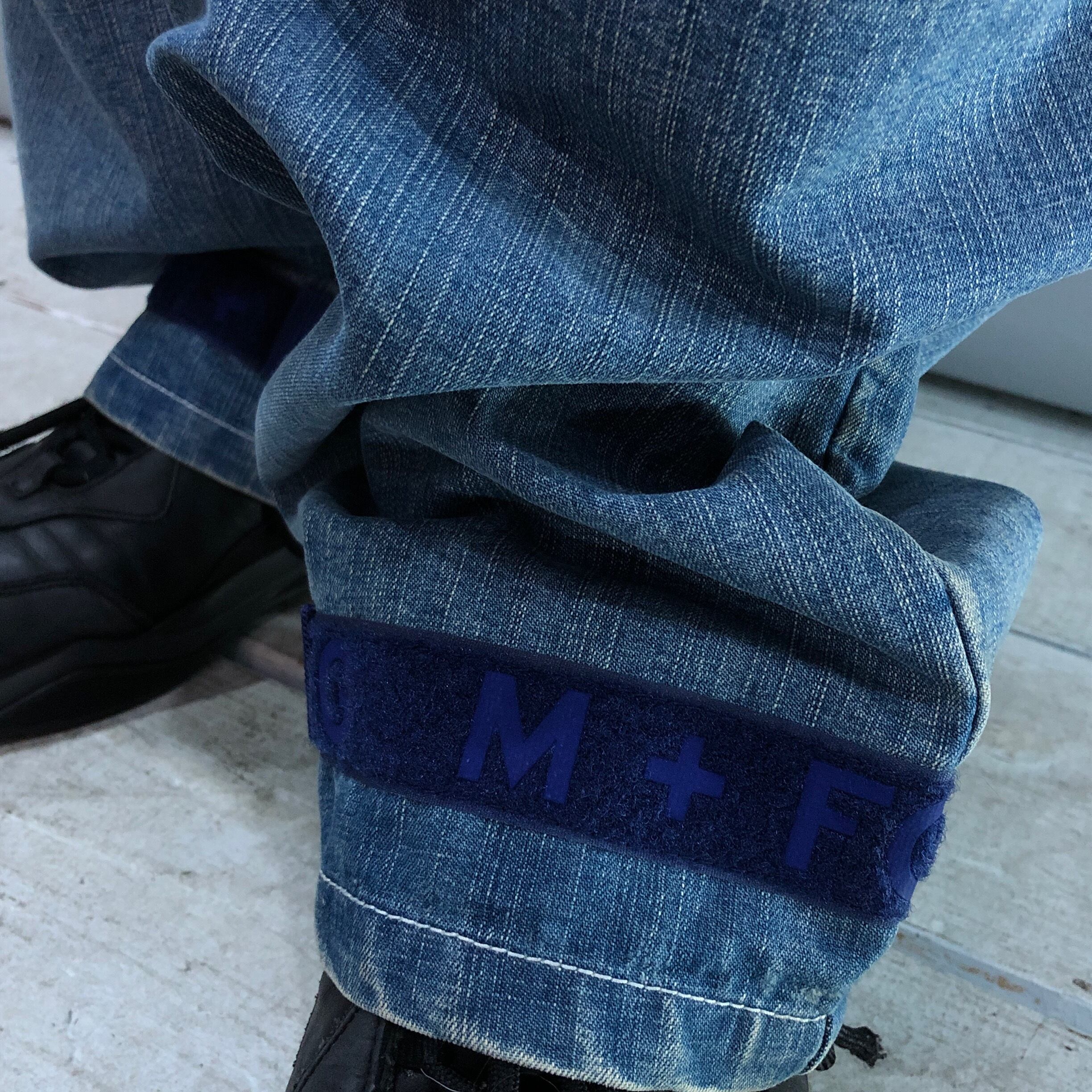 デニムに施されたテーピングロゴがアクセントとなっており裾を絞り気分で雰囲気を変えることも可能に。