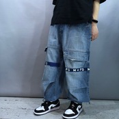 デニムに施されたテーピングロゴがアクセントとなっており裾を絞り気分で雰囲気を変えることも可能に。