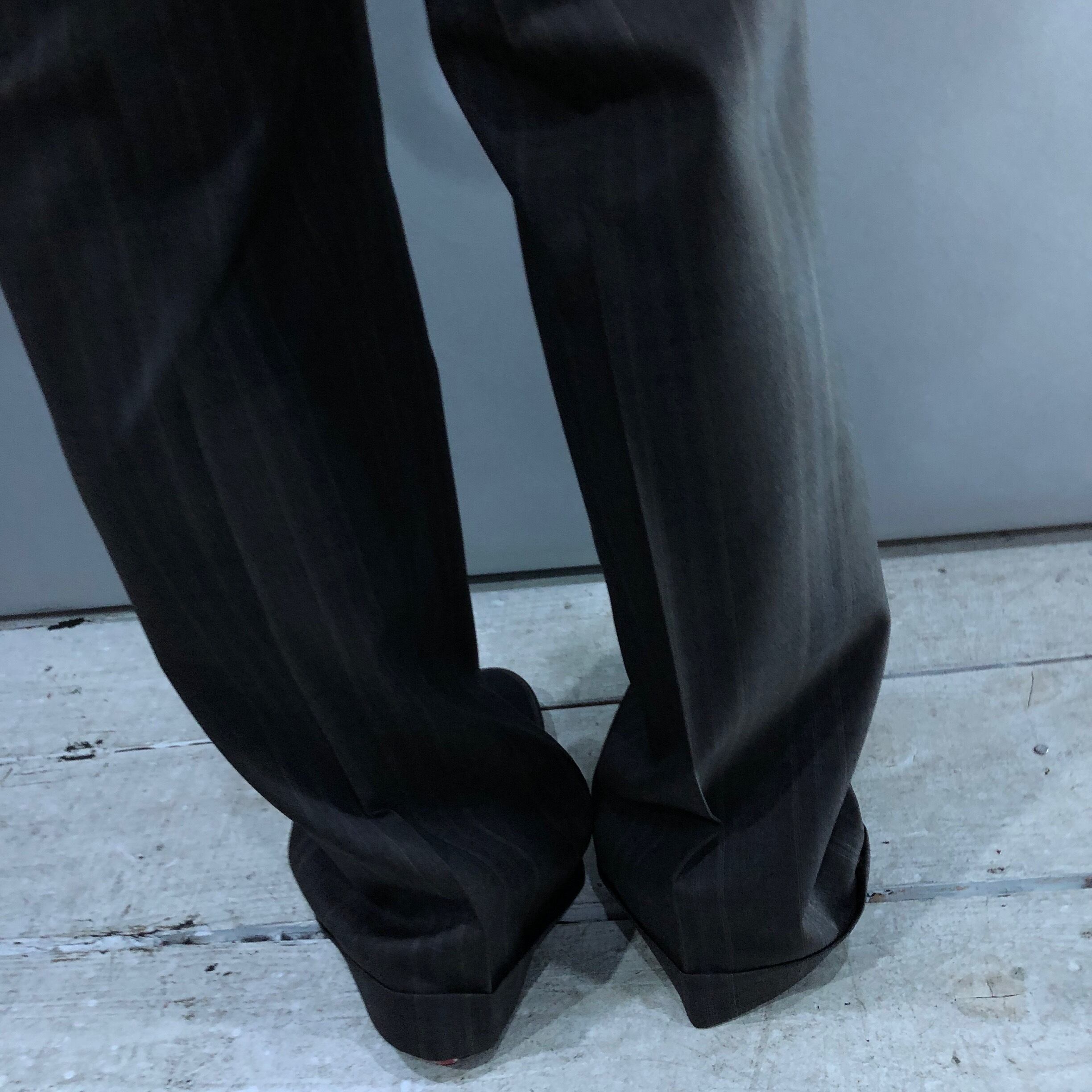 ダブル仕立てにオリジナルチェックが映えるセットアップ。オールドスーツにありがちなダボダボデザインではないため今着ても新鮮です。
