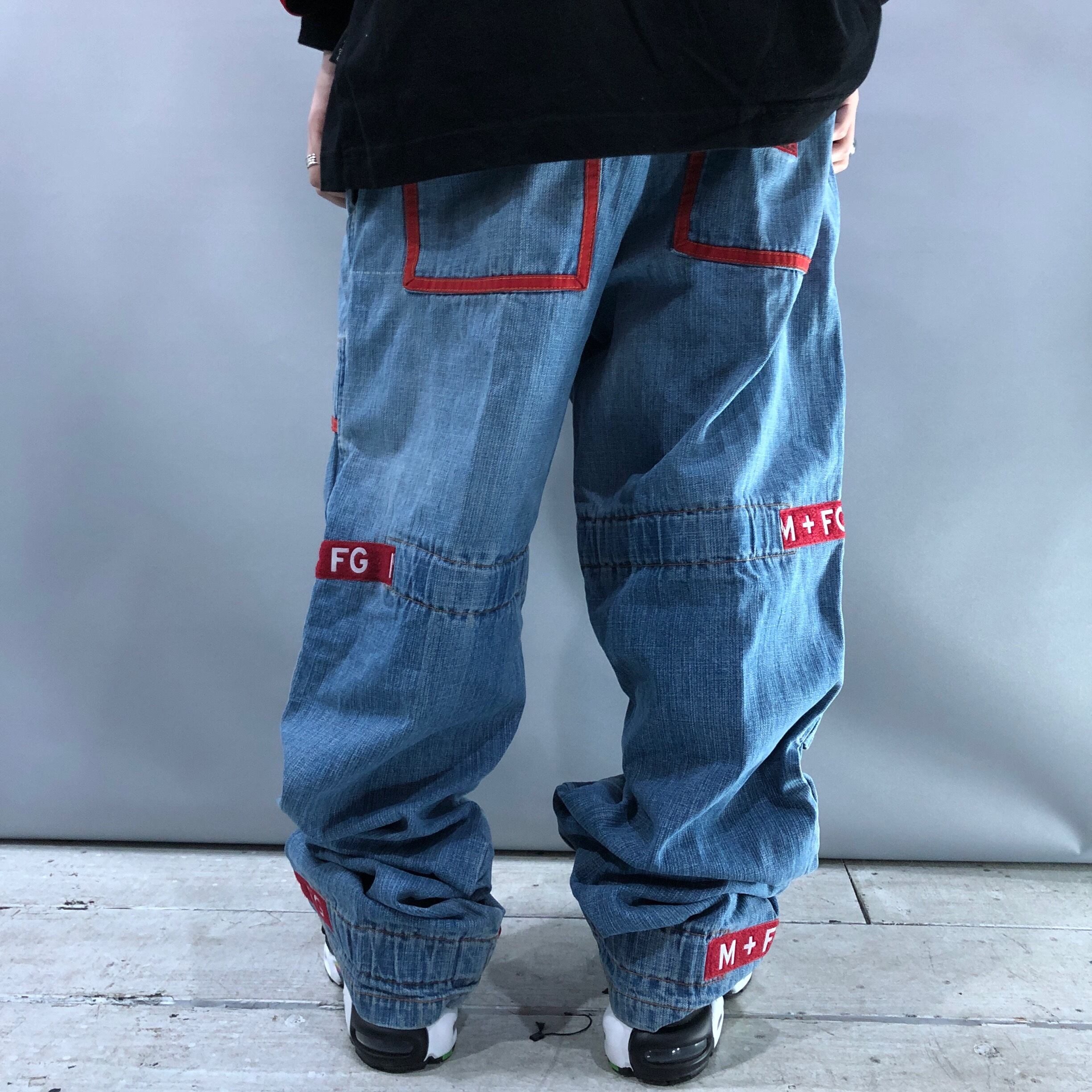 【MARITHE FRANCOIS GIRBAUD】シャトルデニム36M水色×赤 LE2205
