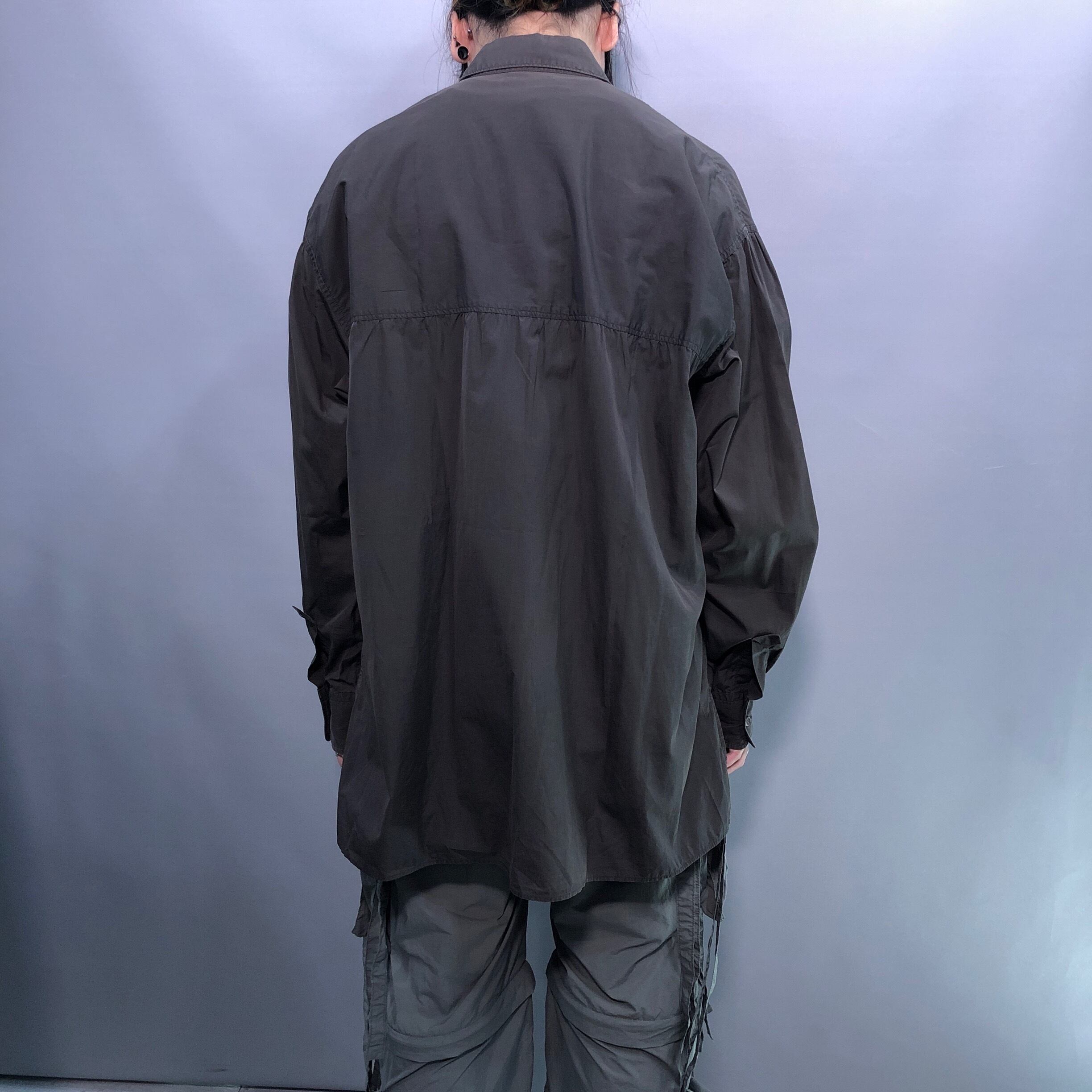 計算されたボックスシルエット、ポケットデザインが印象的なオーバーサイジングシャツ。ミリタリー感漂う土臭さがたまらない逸品。