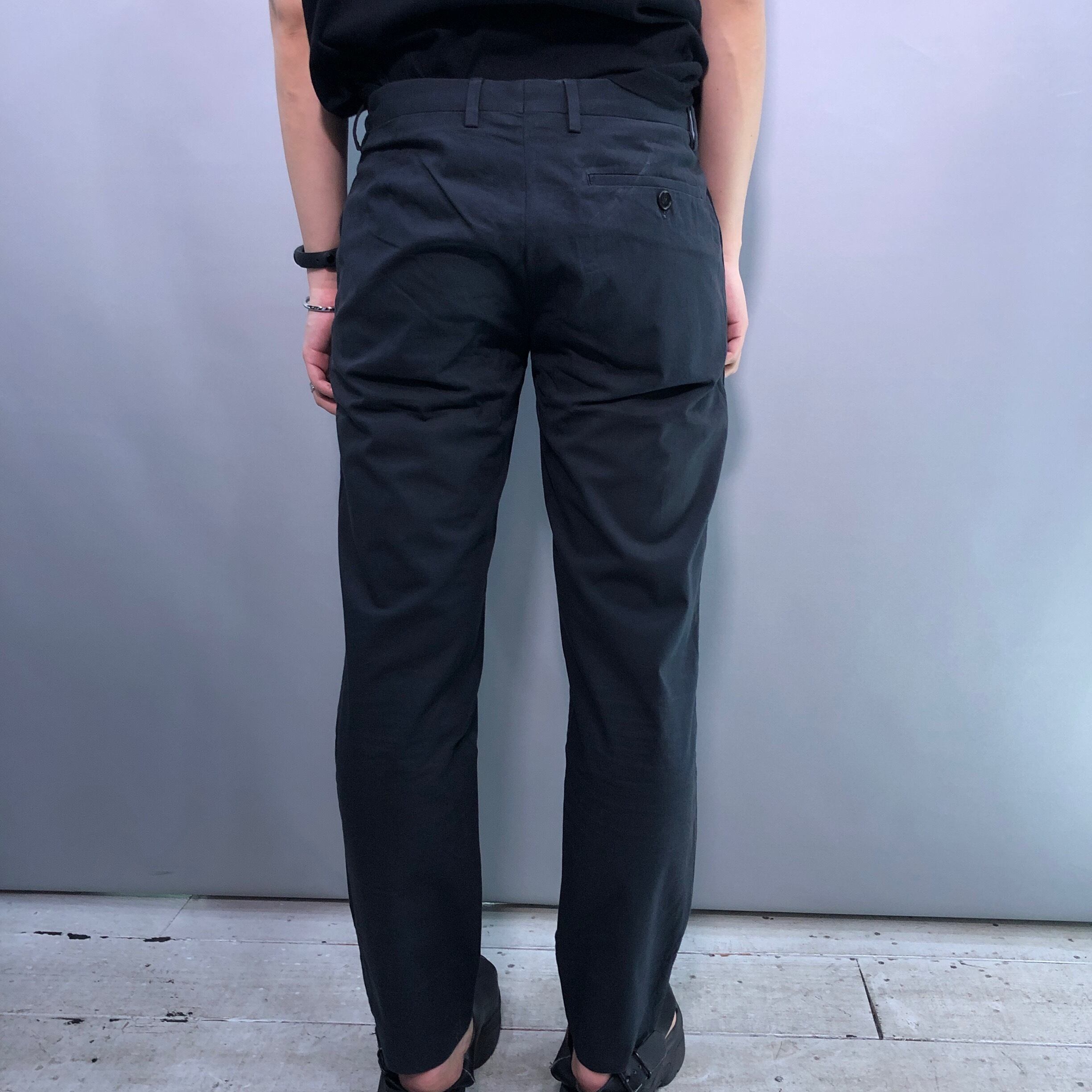 シンプルかつタイムレスなアイテム。マニッシュな印象を添えるセンタープレスがなく無駄のないクリーンなシルエットが作り出すタイムレスな逸品。テキスタイルは肌触りの良いコットン素材。