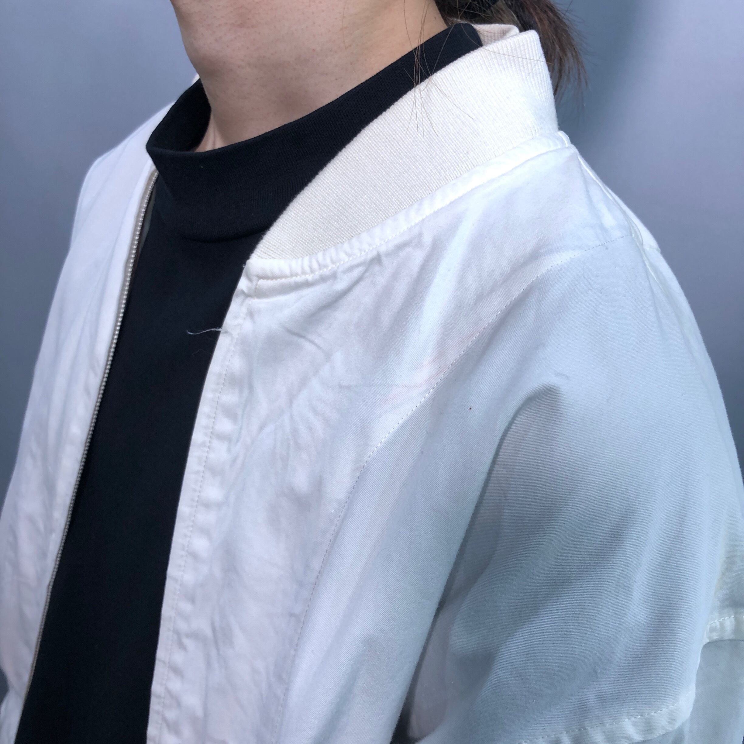 定番アウターのMA-1デザインでミリタリー要素は残しつつも無骨になり過ぎないスリムなシルエットに仕上がっています。裏地がストライプなので遊び心も◎