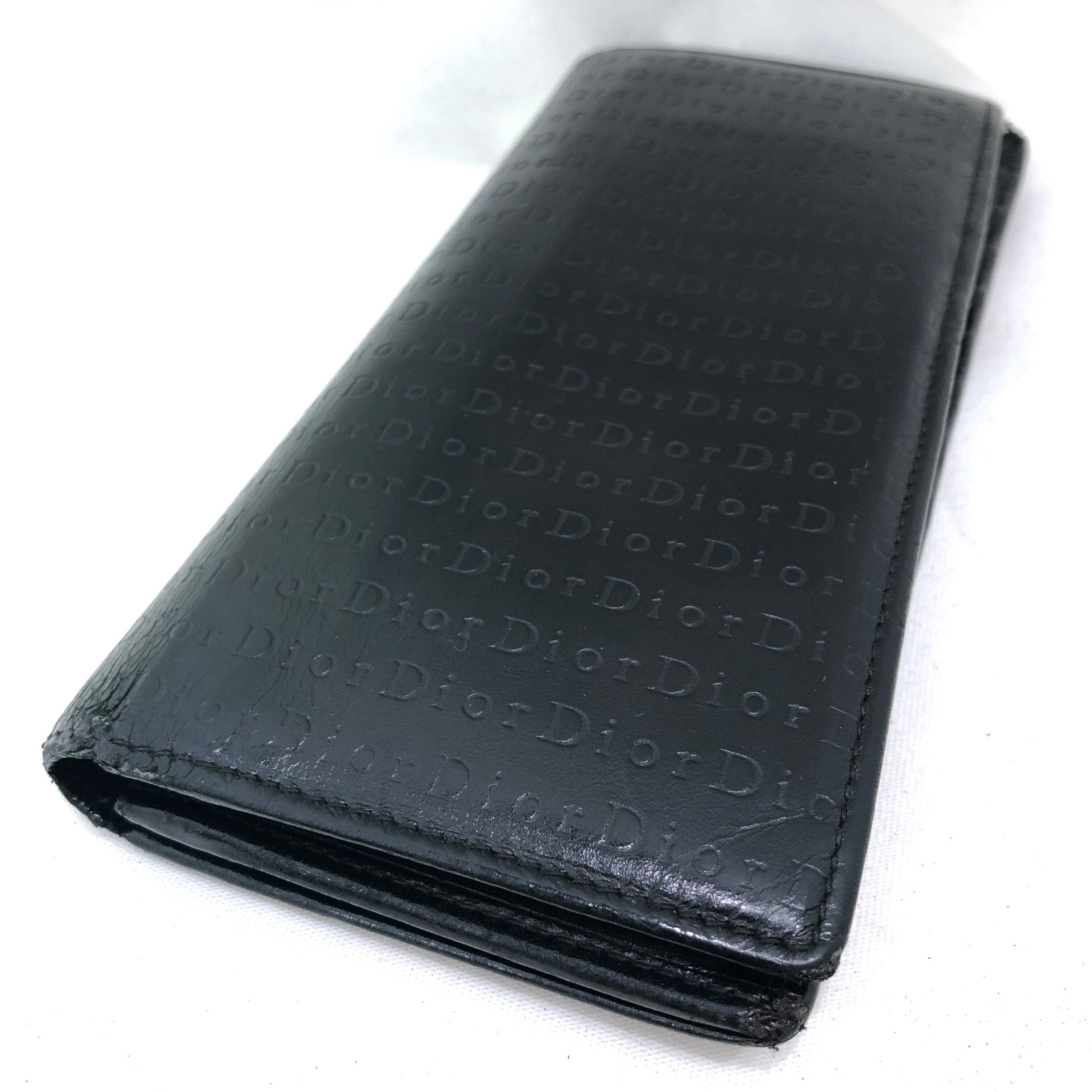 漆黒の光沢感が艶っぽい表面にディオールロゴが全面に型押しされた長財布、パンツのバックポケットからはみ出させ、主張させるをお忘れなく。