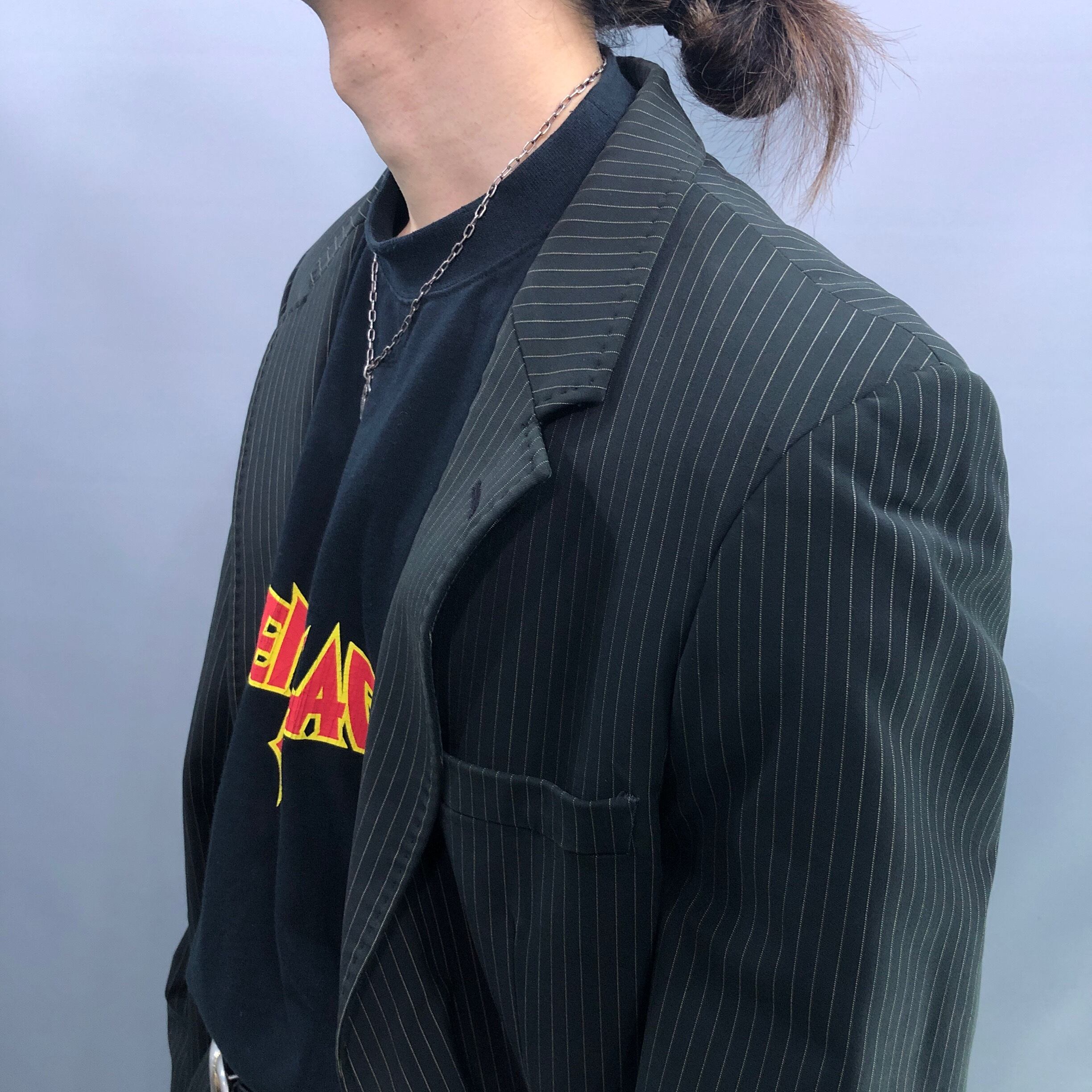 しっとりとした生地感が重厚感を感じるしっかりとしたつくり、美しいオーバーめなシルエットに主張しすぎないストライプはオンオフ選ばずご着用いただけるアイテムです。
