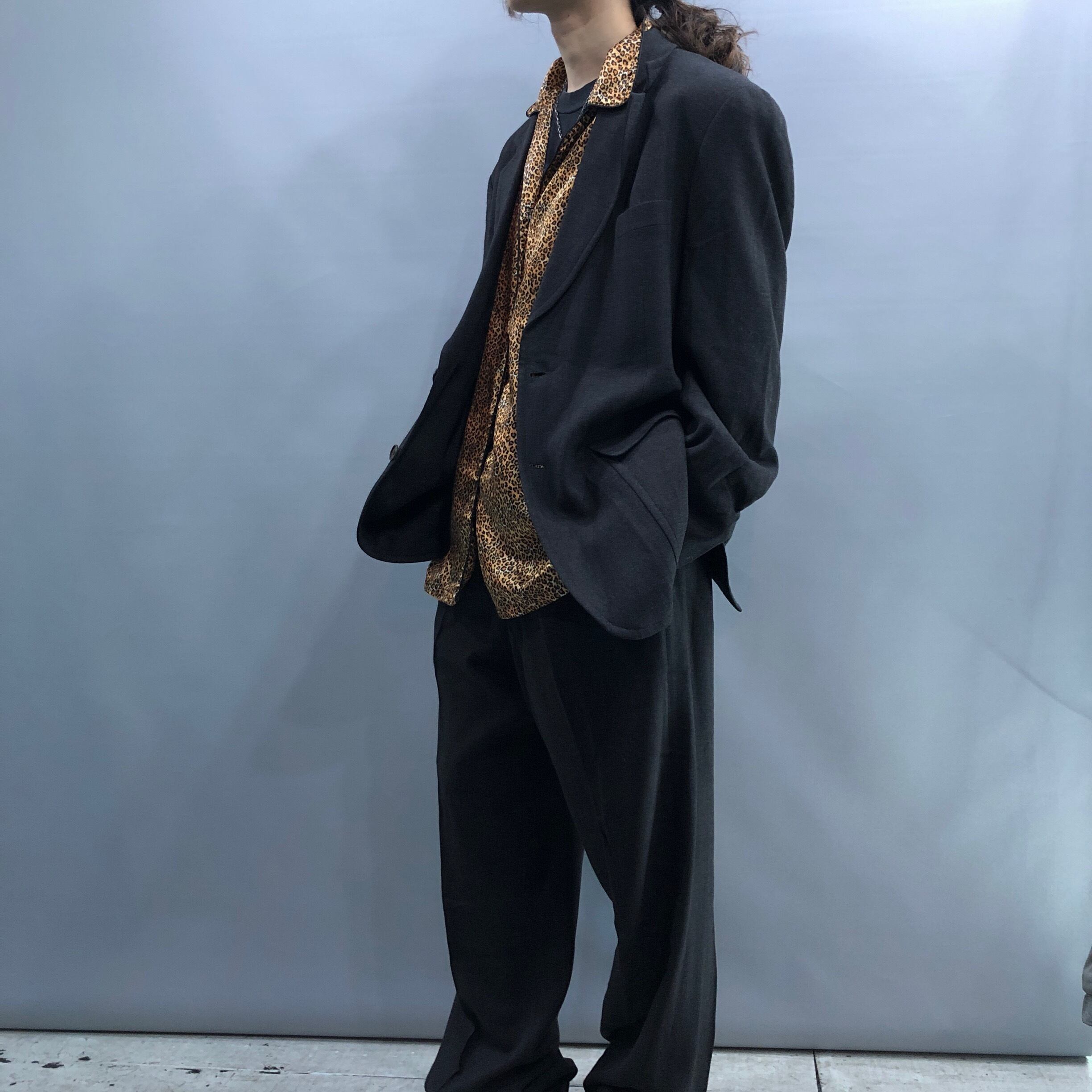 ダブル仕立ての無骨なセットアップ。各部のステッチ、裏地、衿裏のカラークロスに至るまで細部にこだわった美しいドレープ感のあるとろみシルエットもたまらない逸品。