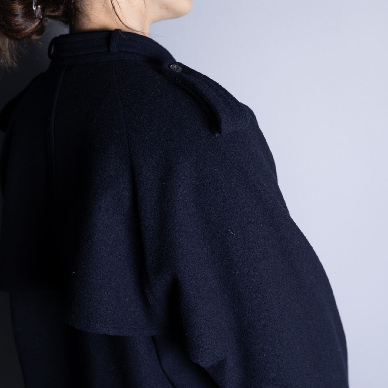 随所にベルトを配した、シンプルながら奥深いデザイン、ウール100%で着心地、肌触りも抜群の逸品。
