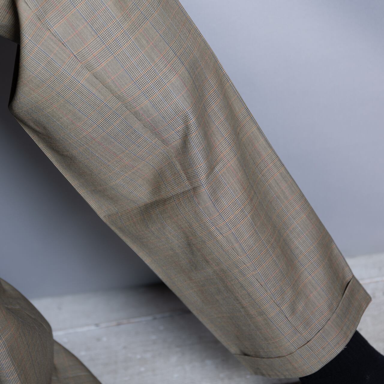 ブリティッシュスタイルとカジュアルバランス絶妙なサイジング。珍しいカラーリングの派手すぎないグレンチェックがポイント高し。今っぽいコーデに取り入れてみては。