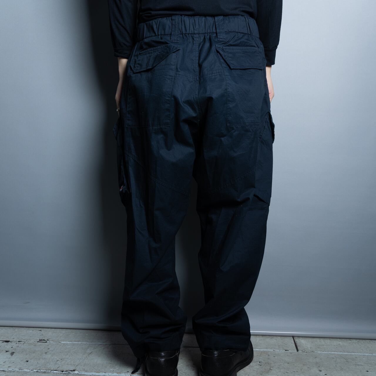 人気の増加を受け、年々希少価値の上がっているロイヤルネイビーのカーゴパンツ、無駄なディティールを排除し、ミリタリーらしくないミニマムなデザインに、特徴的な斜めに配したスラントポケットと呼ばれるサイドポケット、ウエスト部にサイドアジャスターが用いられ、ベルトなしの着用も可能です。