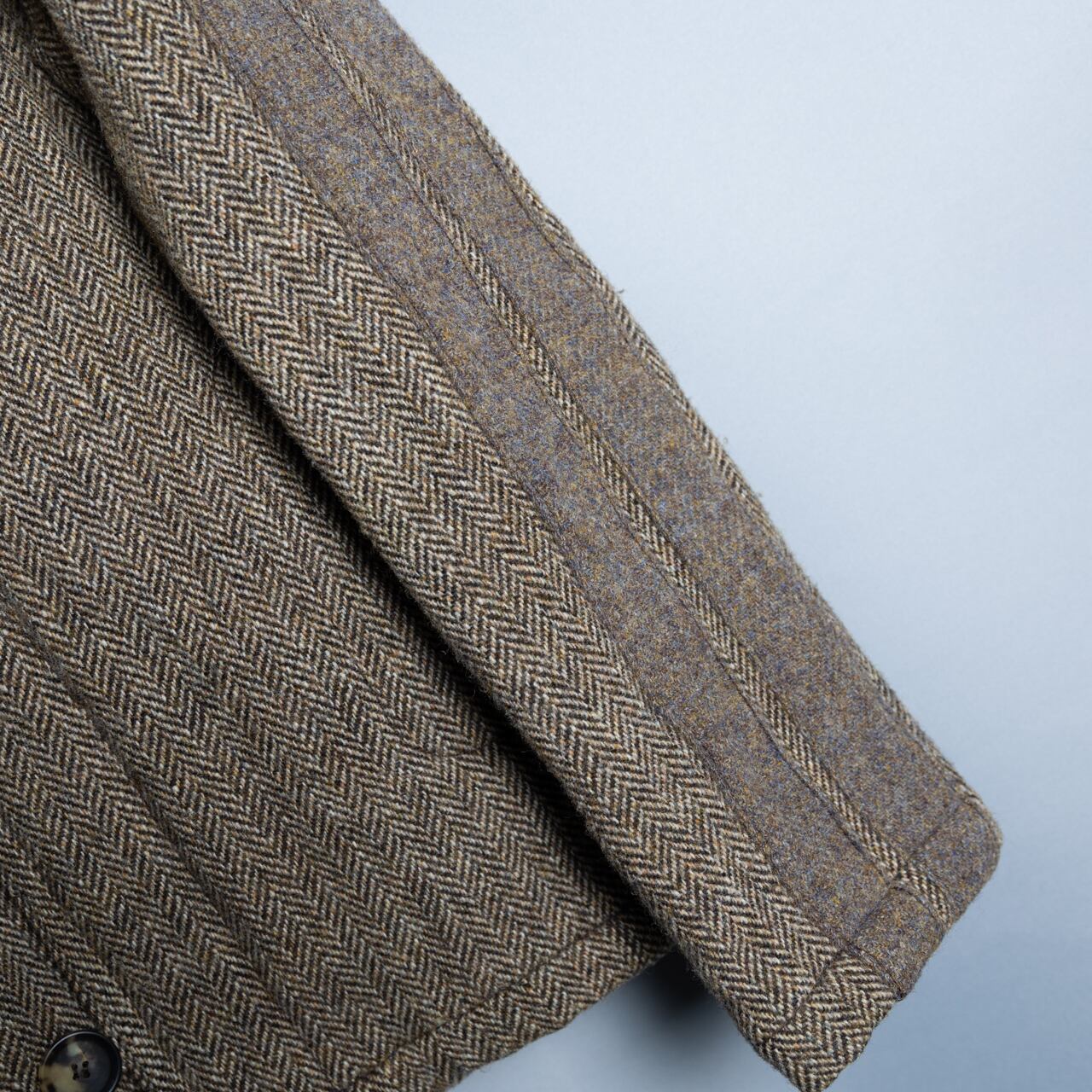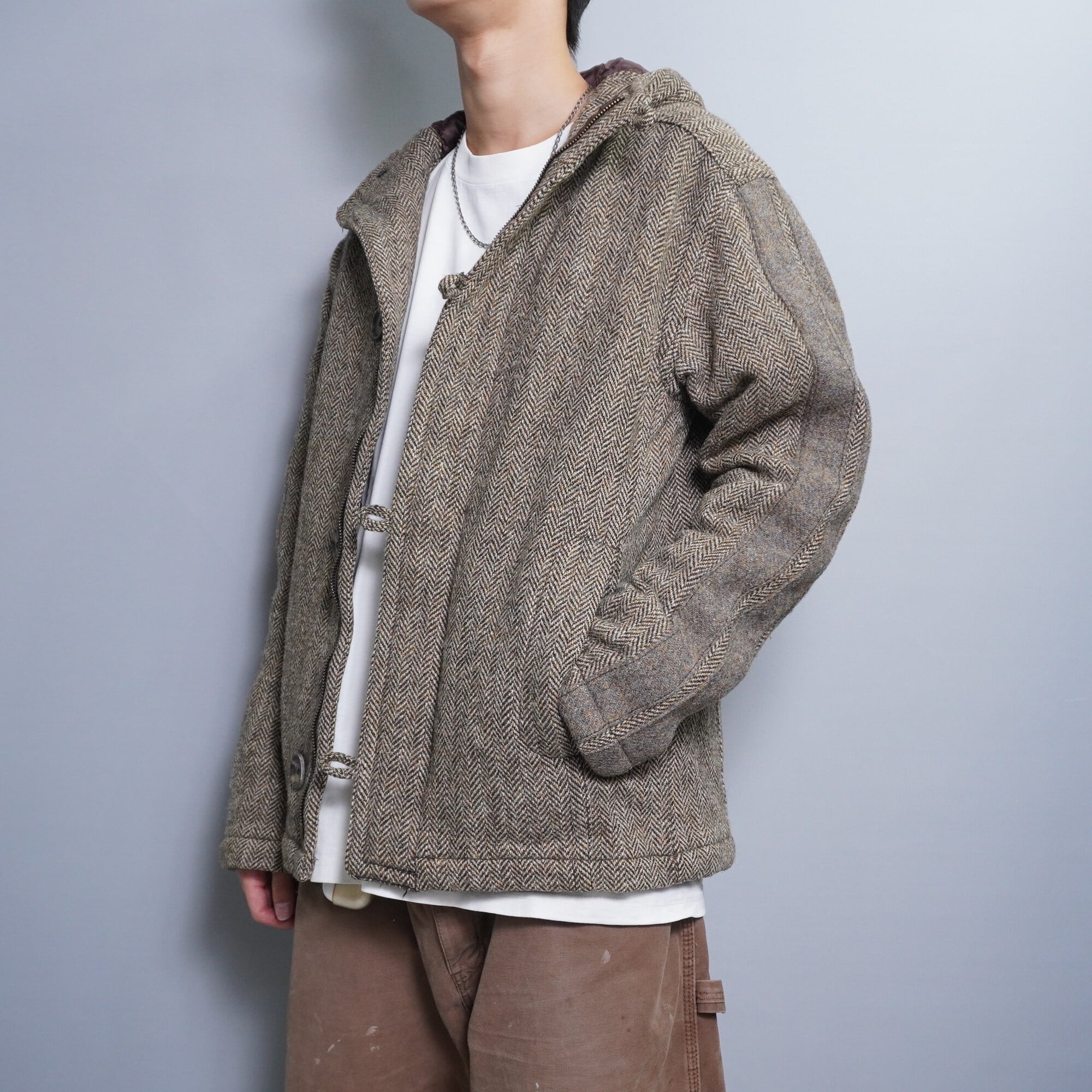 ウールヘリンボーンの暖かみある素材、丈感短めなのでインナーにロング丈など持ってきてレイヤードするのもオススメ。