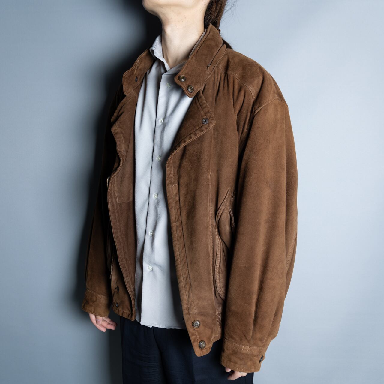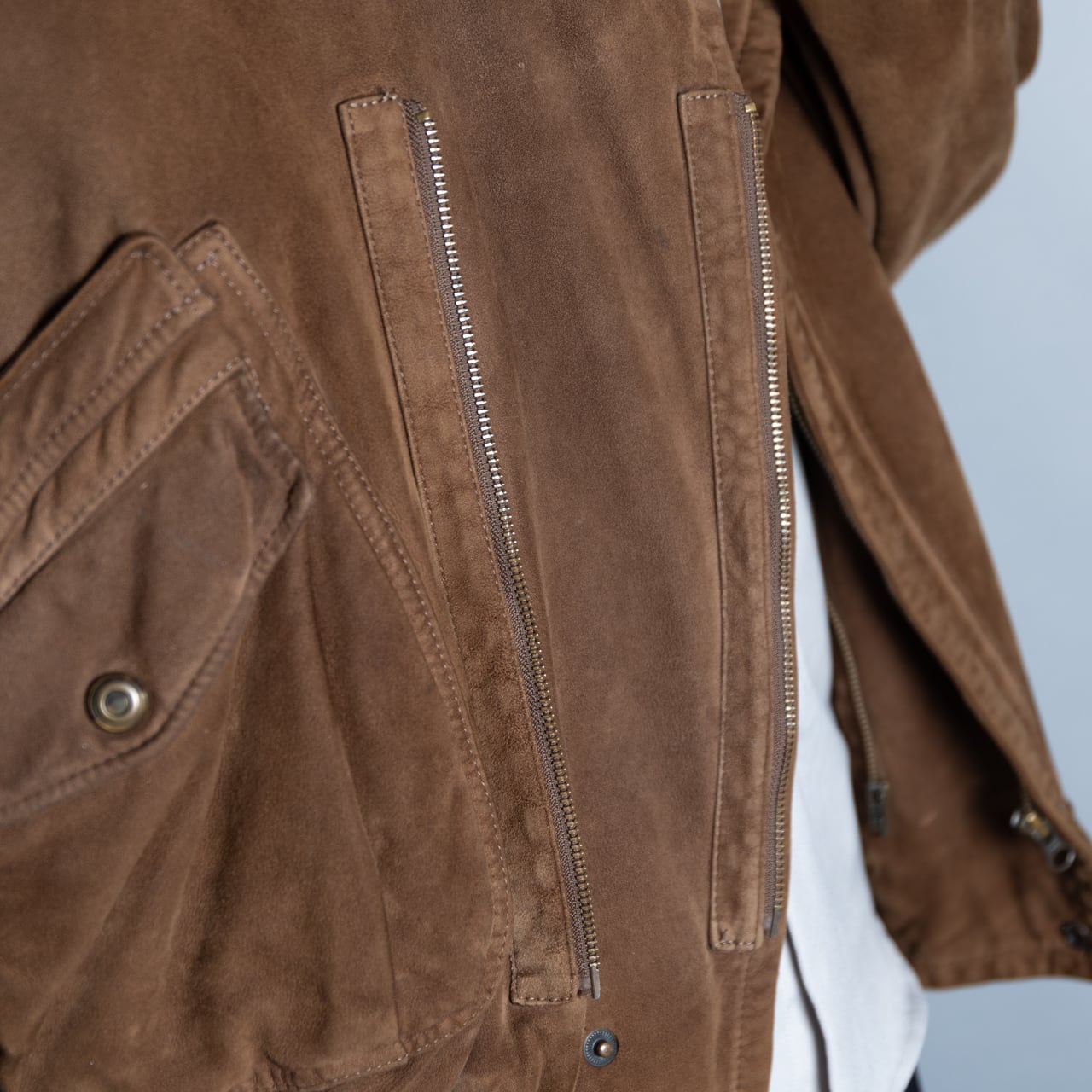 ダブルジップ仕様、サイズ感もボリューム感もヴィンテージ雰囲気ムンムンの最高にかっこいい逸品。襟元には裏地と同柄の収納可能なフード付。
