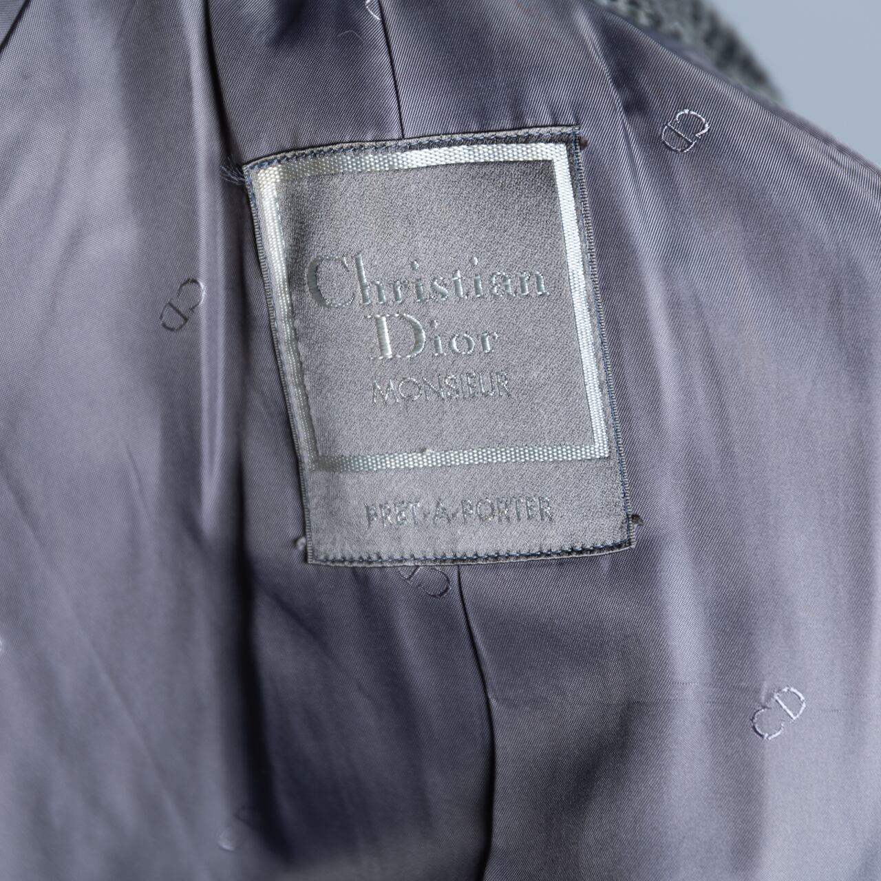 【Christian Dior】ウールシャギー帯付グレーチェックコート