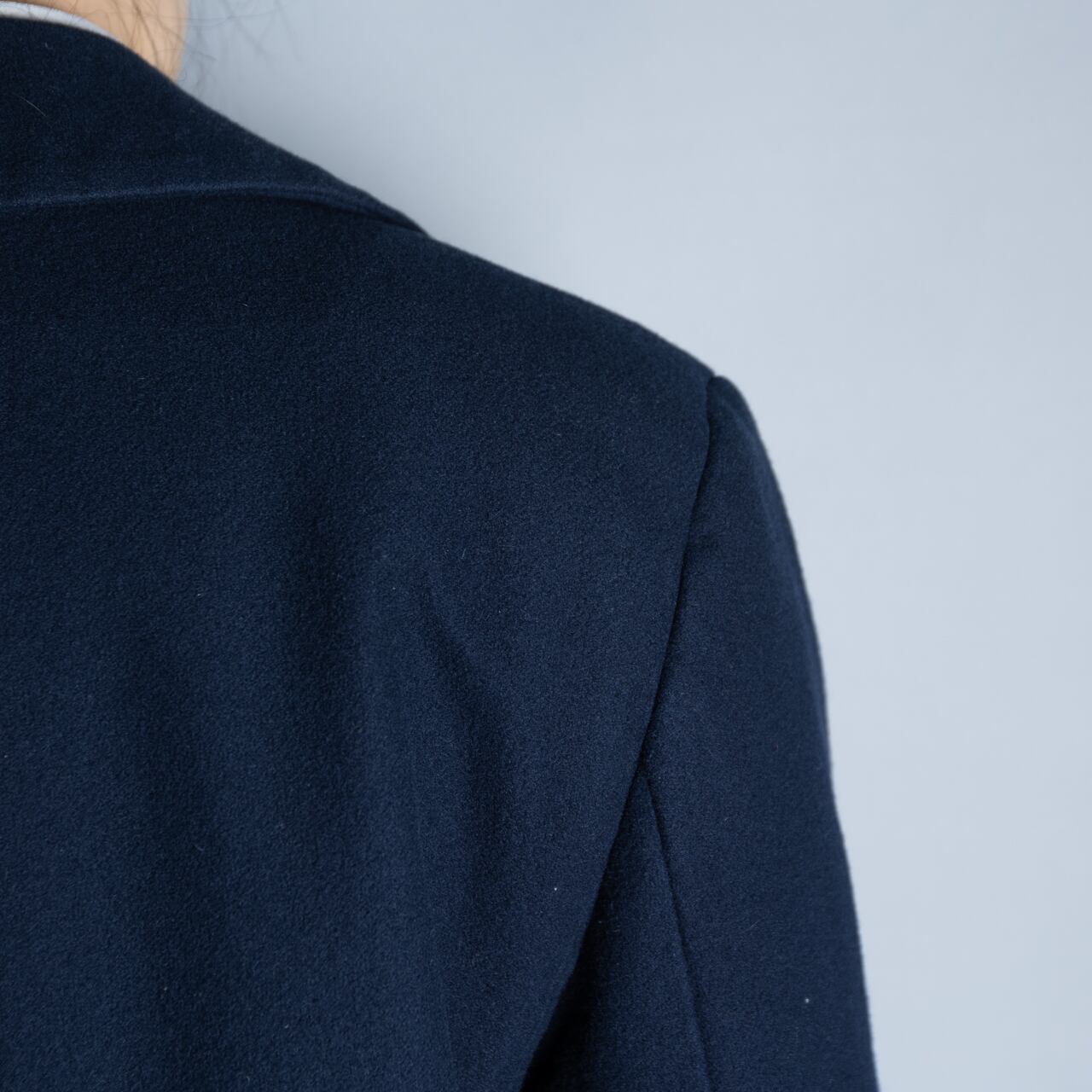 09年のアーカイブアイテム、Pコートの基本のマフポケットにスラッシュポケットをお洒落に配置したデザイン、ダブルボタンでしっかり大人の落ち着いたコーデが可能な1着です。