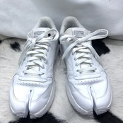 1989年春夏にトウが2つに分かれた日本の伝統的な、足袋からインスピレーションを得たシューズを発表、以来反抗精神を見事に捉えたスタイルは、幾度となくリモデルが施された、こちらはReebokを代表するクラシックレザーをベースにした、スプリットトウを採用したスニーカー。