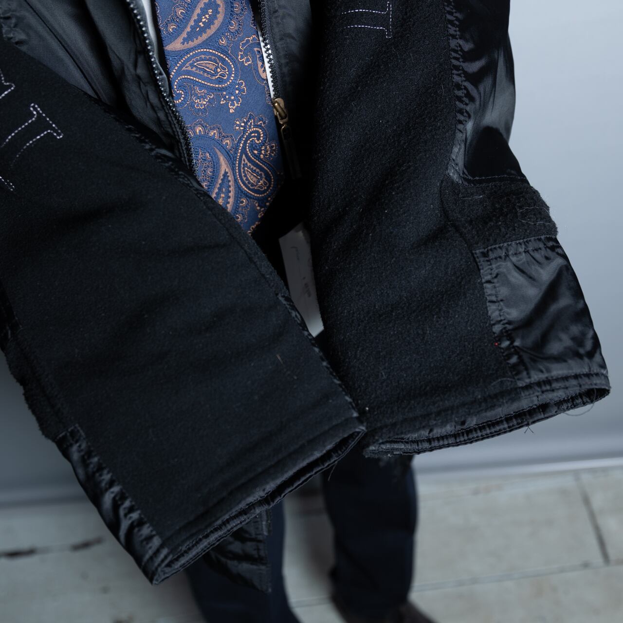 ・フードにナイロンとフリース切替デザインで防寒性もしっかり。