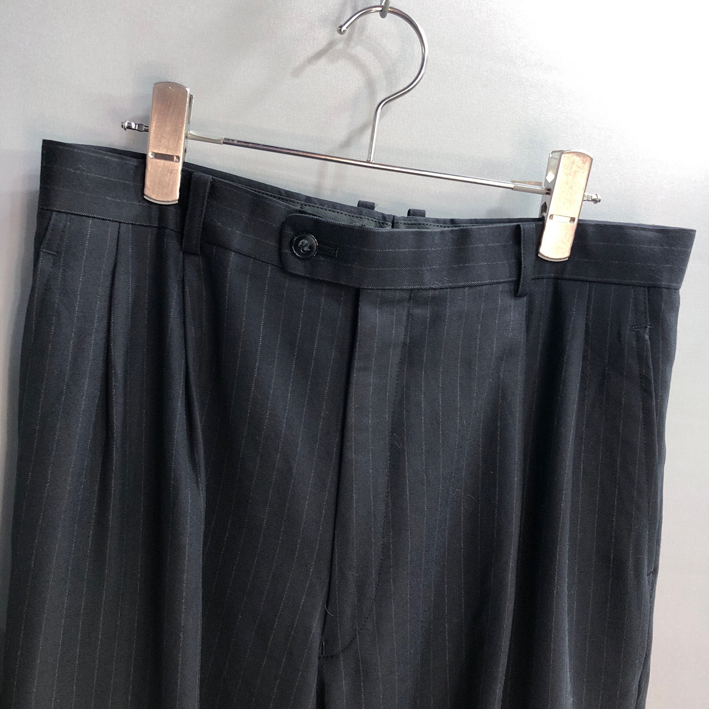 ・上品で華やかなストライプにウール100%の素材感にマッチした人気のネイビーカラー。