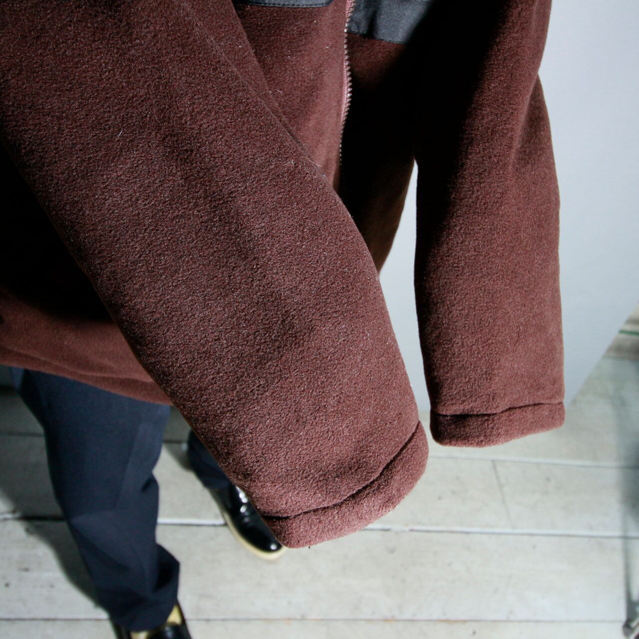 表はバイカラーのフリースジャケット、裏はブラックカラーのナイロンジャケットのリバーシブル仕様。ジップのロゴ、刺繍、オーバーサイジングどれをとっても申し分なしの極上品。