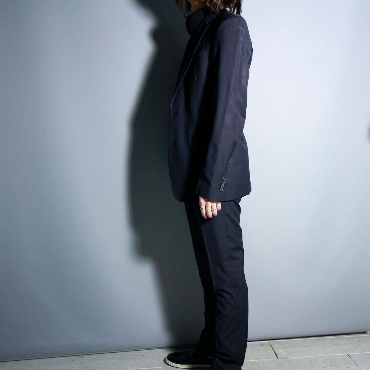 プラダらしい細身でジャケットの丈感をしっかり出して艶感たっぷりのシルエット、希少なバージンウールを使った極上の着心地がたまらない1着。