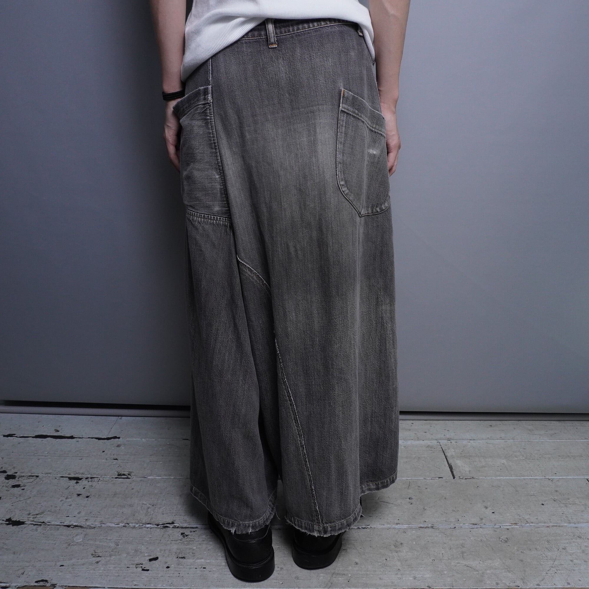 今ではヨウジヤマモトの代名詞的な袴パンツ、袴から着想を得た、深いタックを入れたスカートのように見えるワイドシルエットをお楽しみ頂けます。