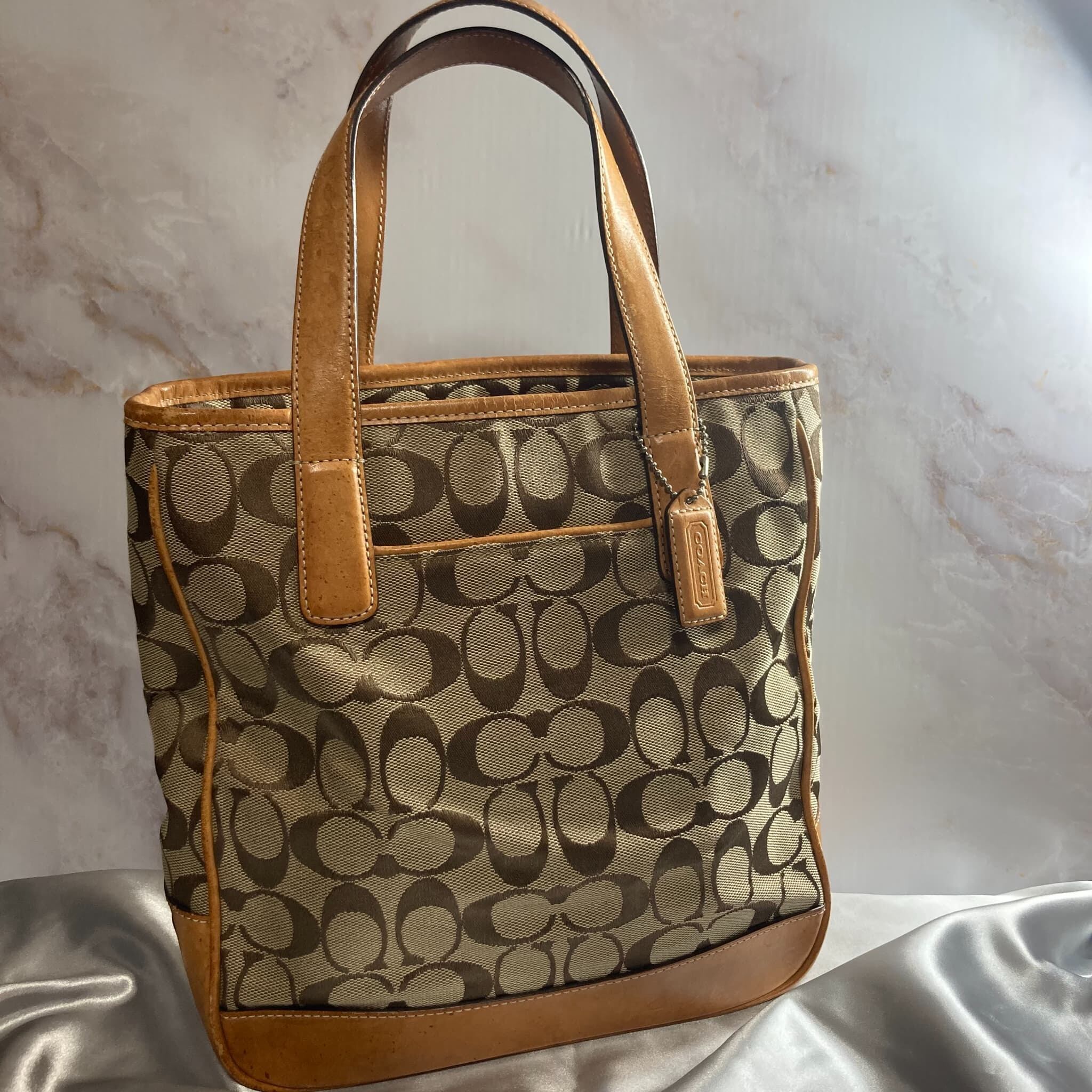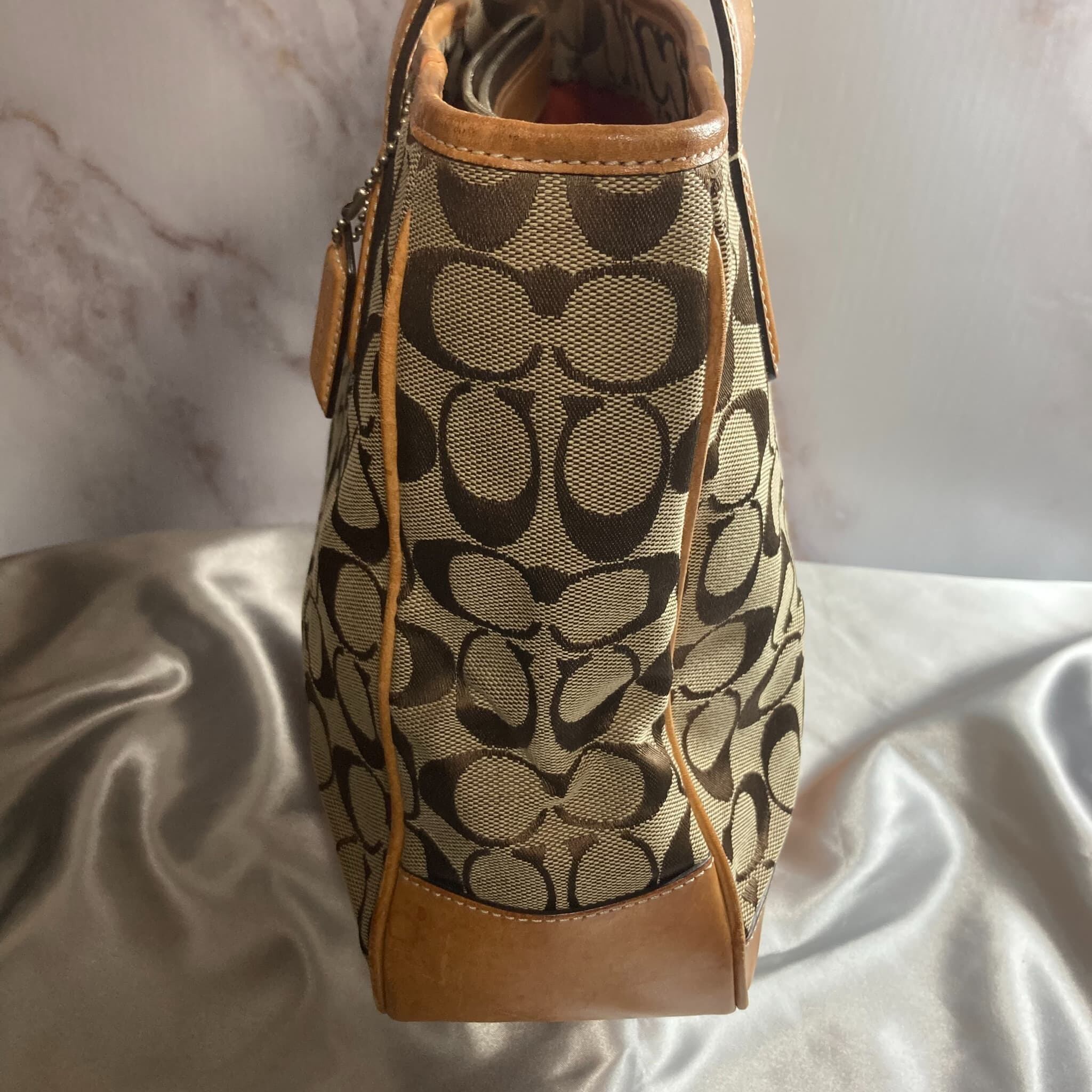 【COACH】"良品" シグネチャーデザイン キャンバス×レザー ハンドバッグ