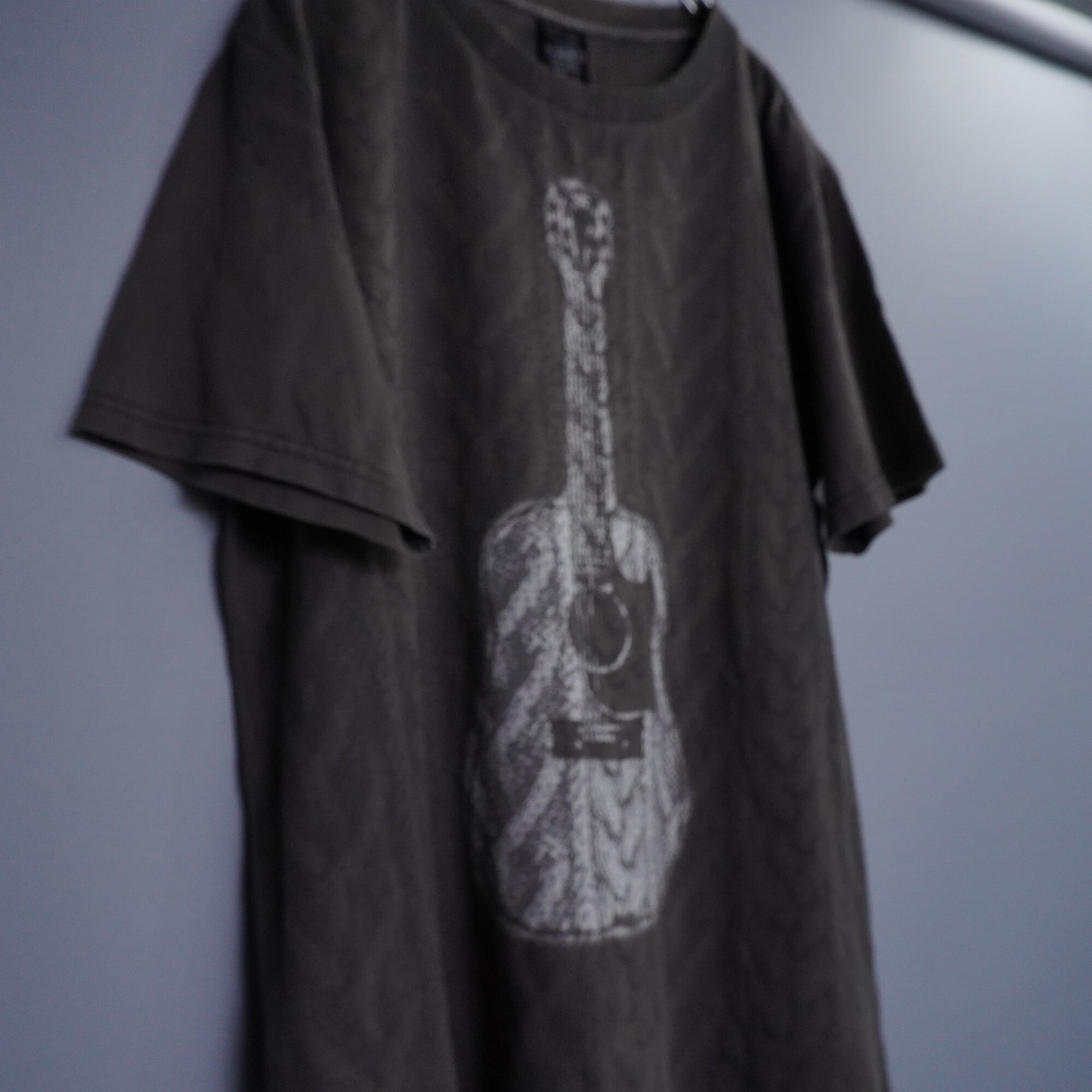 ニットの網目パターンを転写し、ギタープリントを合わせたブランドらしい