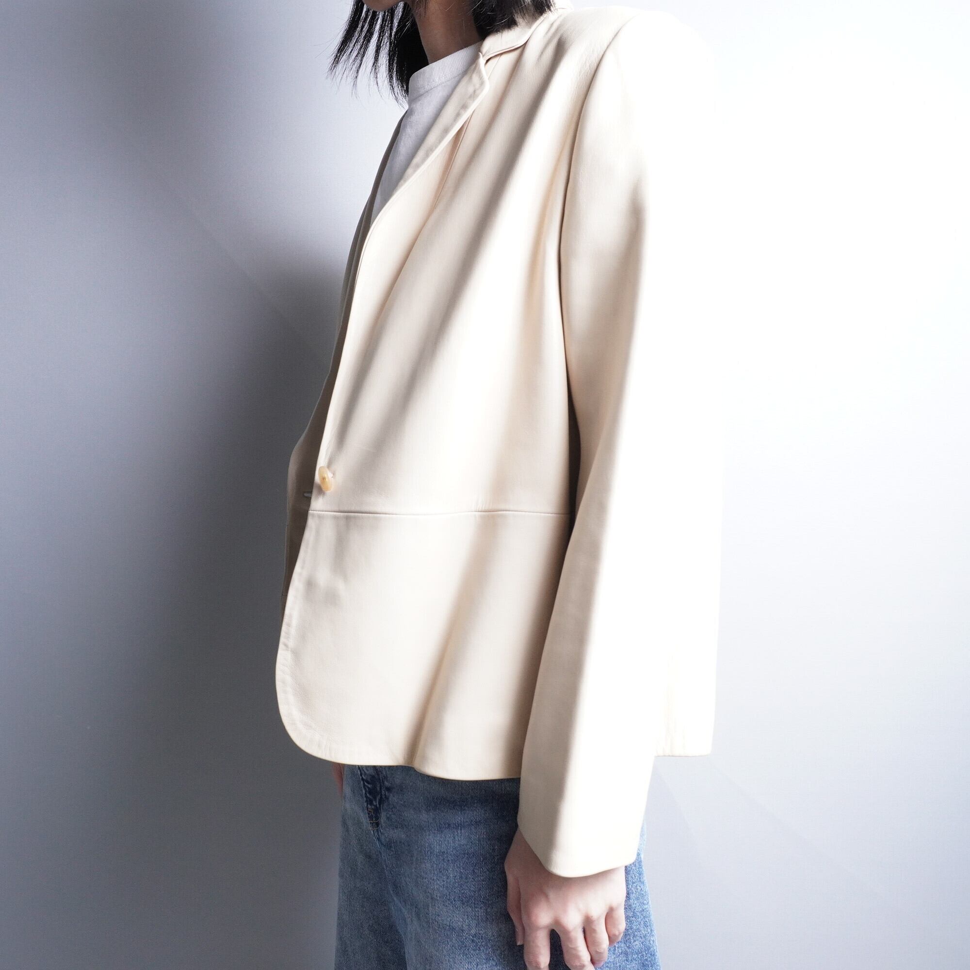 軽いラムレザーを使い重くならない、コーデが可能、独特の光沢感で高級感溢れるモードスタイルが可能な1着。