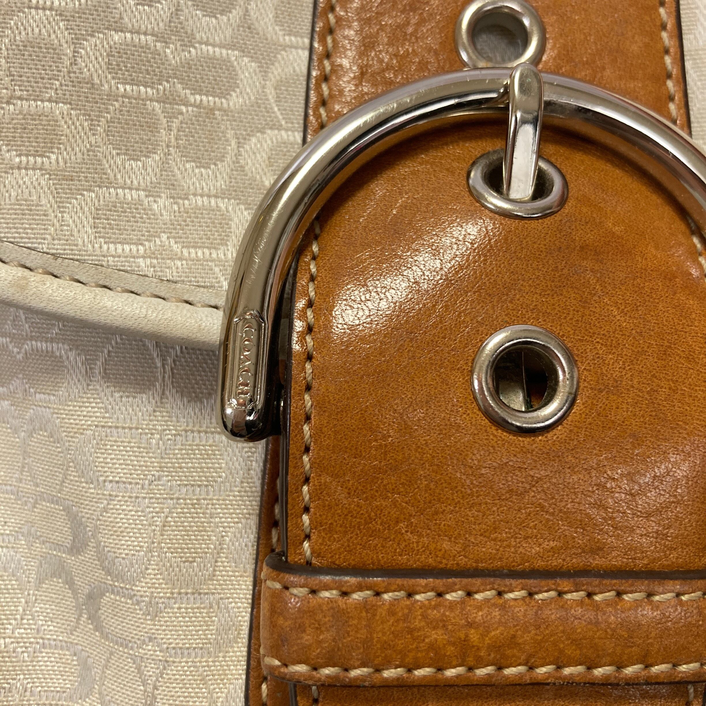 【COACH】美品 シグネチャーキャンバスxレザー ワンショルダーバッグ ホワイト