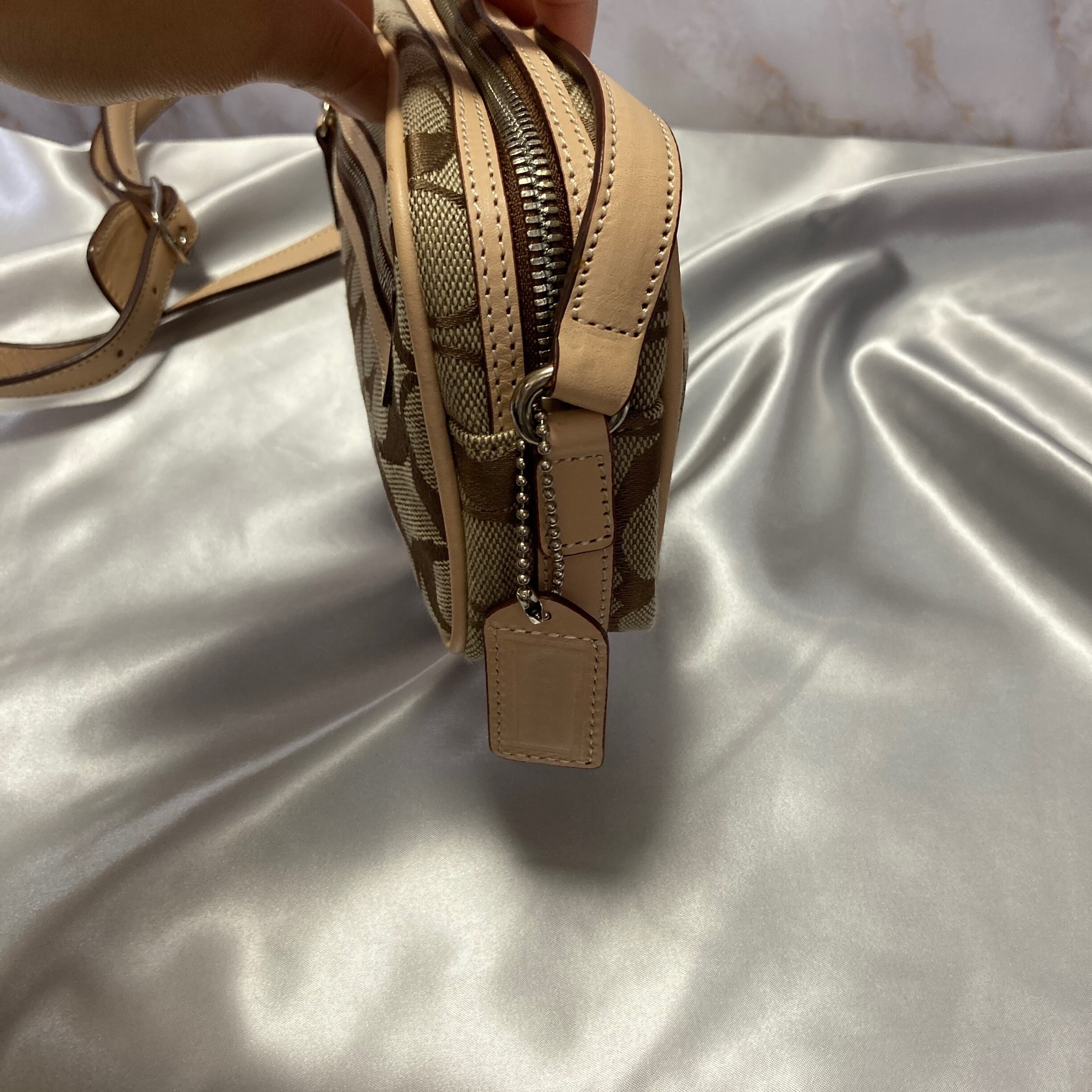 コーチのシグネチャーキャンバス×レザーショルダーバッグです。