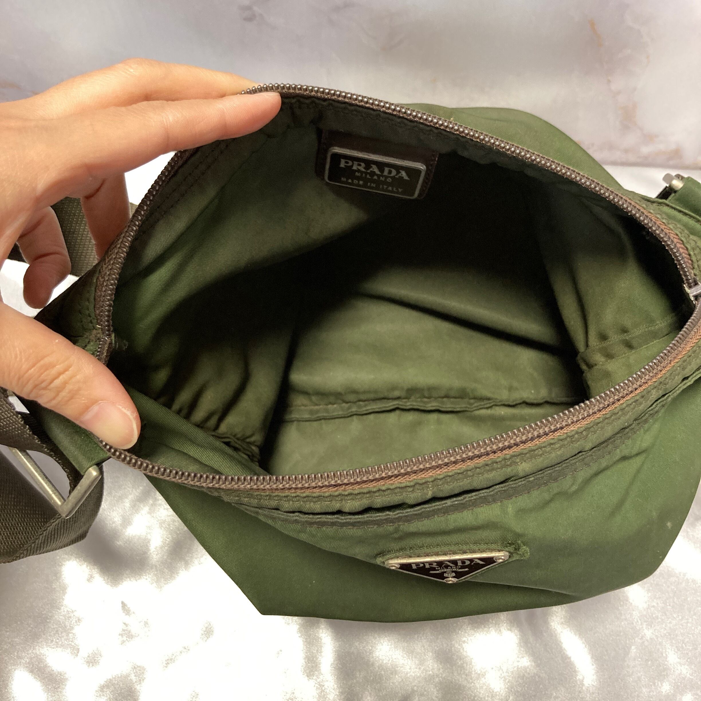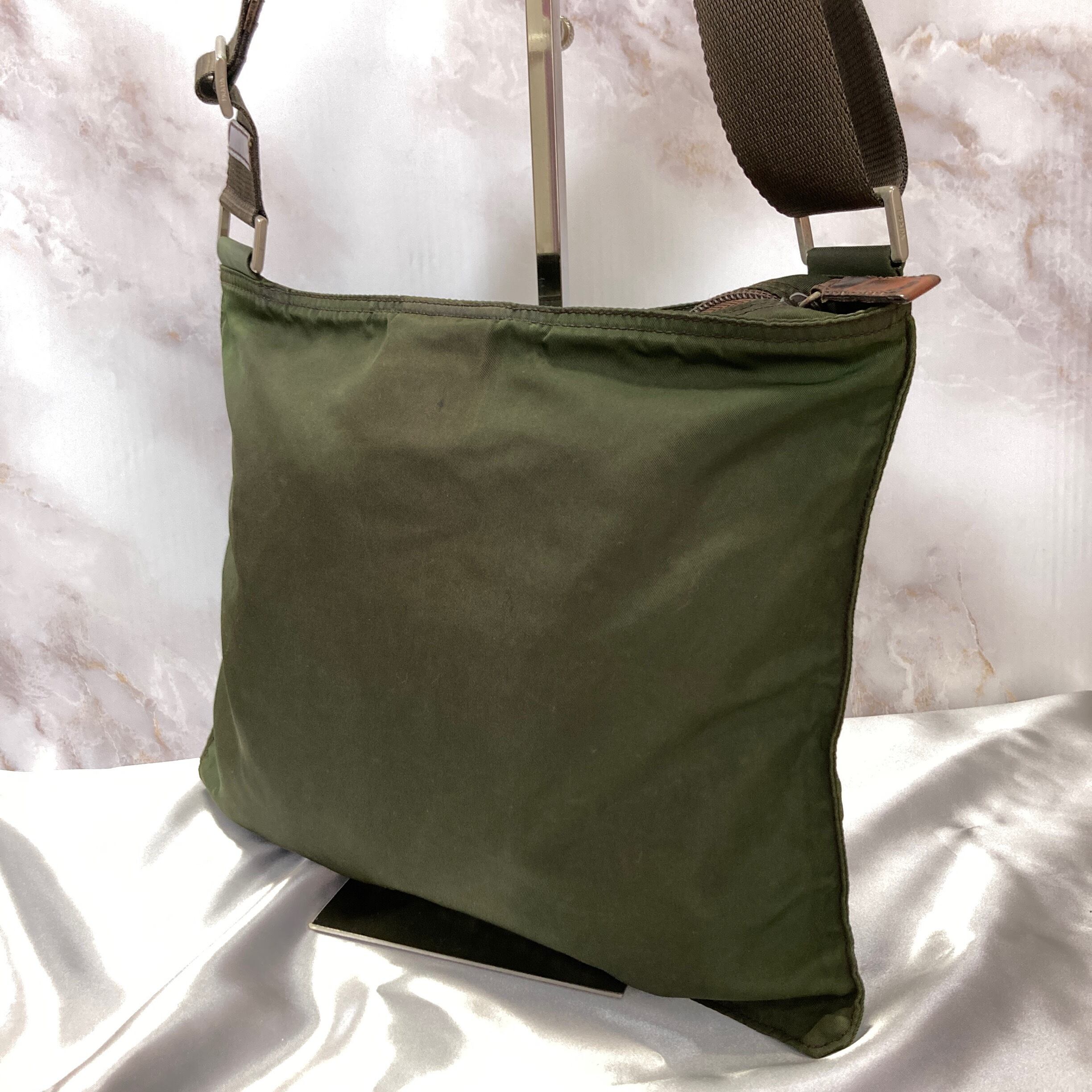【PRADA】トライアングルアイコンデザイン ショルダーバッグ カーキ