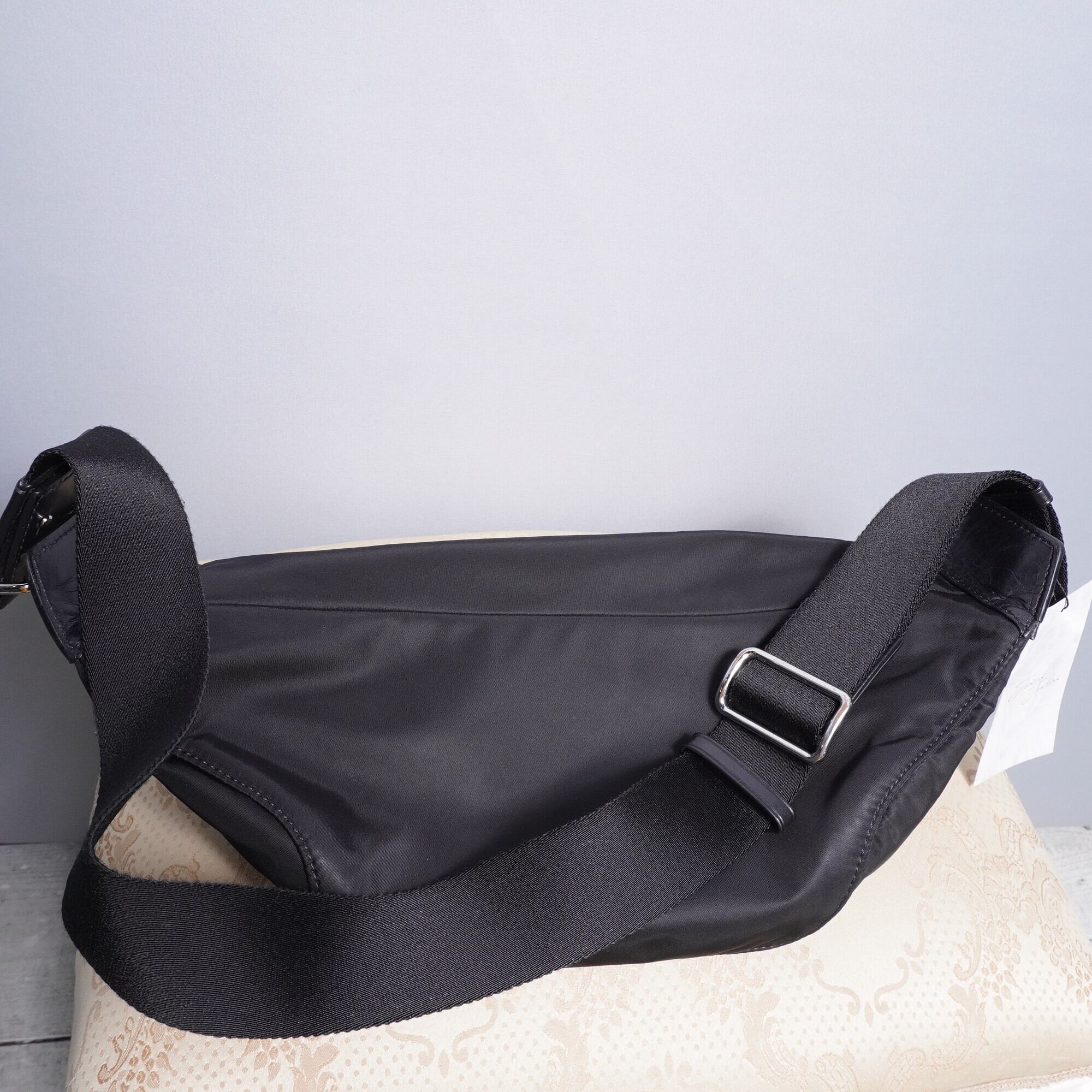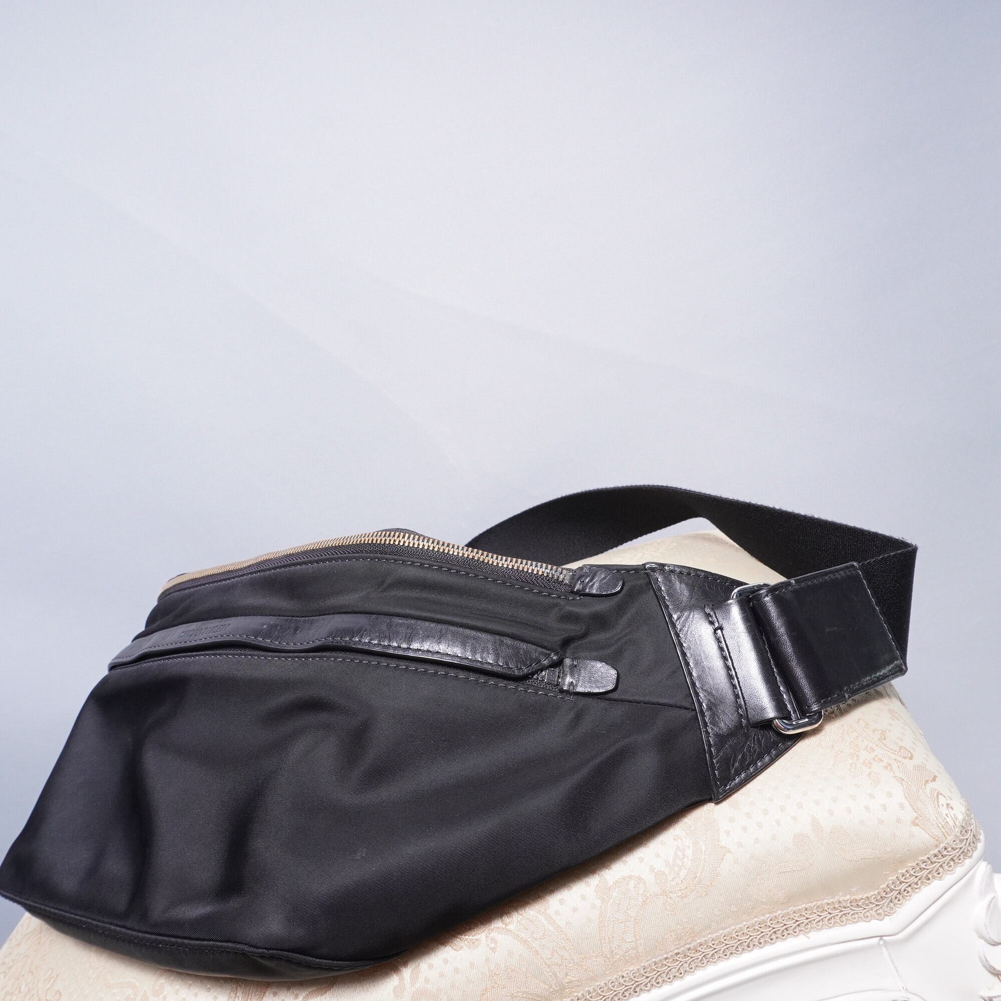 スタイリッシュなデザインでありながら機能性も抜群。メインポケットにはスマホや財布を収納できフロントポケットには小物類を整理可能。素材は上質なレザーと高密度ナイロンを使用し、耐久性も考慮。太めのベルトとシルバーのメタルパーツ使いでビジネスシーンはもちろん、タウンユースにも活躍すること間違いなし。