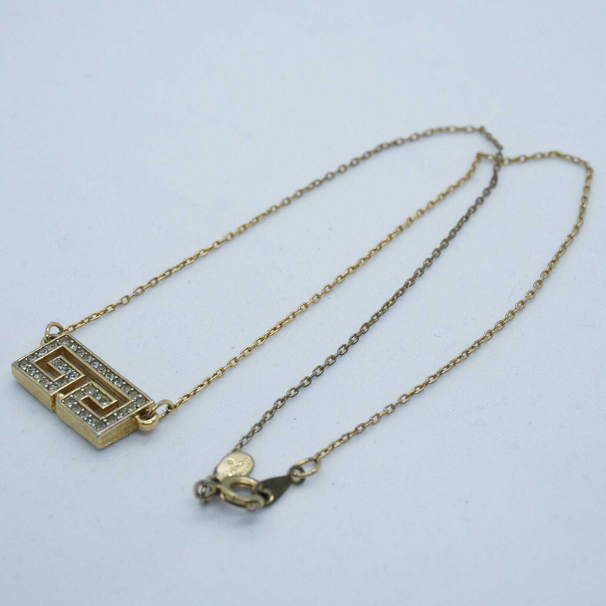 ロゴデザインにラインストーンを散りばめたゴールドネックレス、どんなコーデにも主張はバッチリのアイテムです。