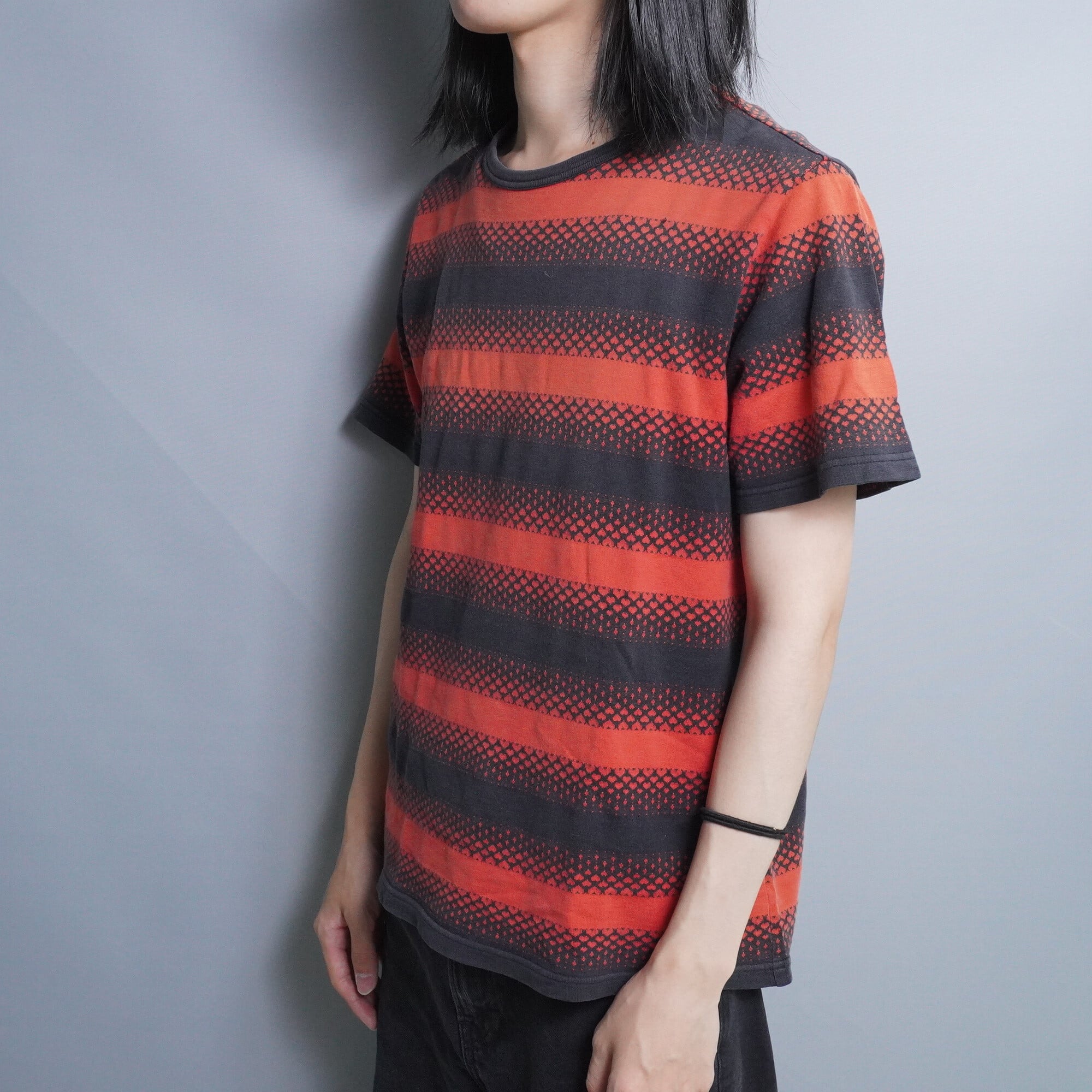 90年代初期の大人気ロックグループNIRVANAのリーダーである、カート・コバーンをテーマにしたカート期のボーダーTシャツ。まさしくそのリスペクトを感じるようなロックなカラー。ボーダーに隠れたハートのプリントも魅力的。