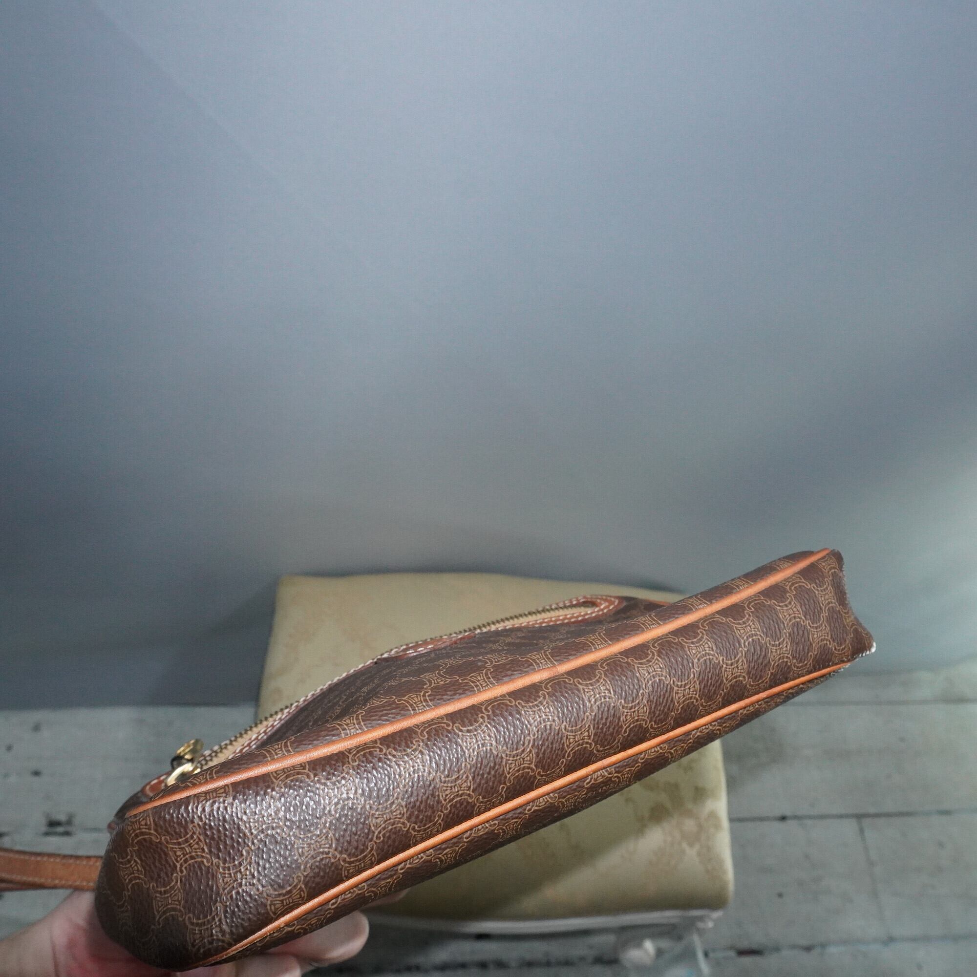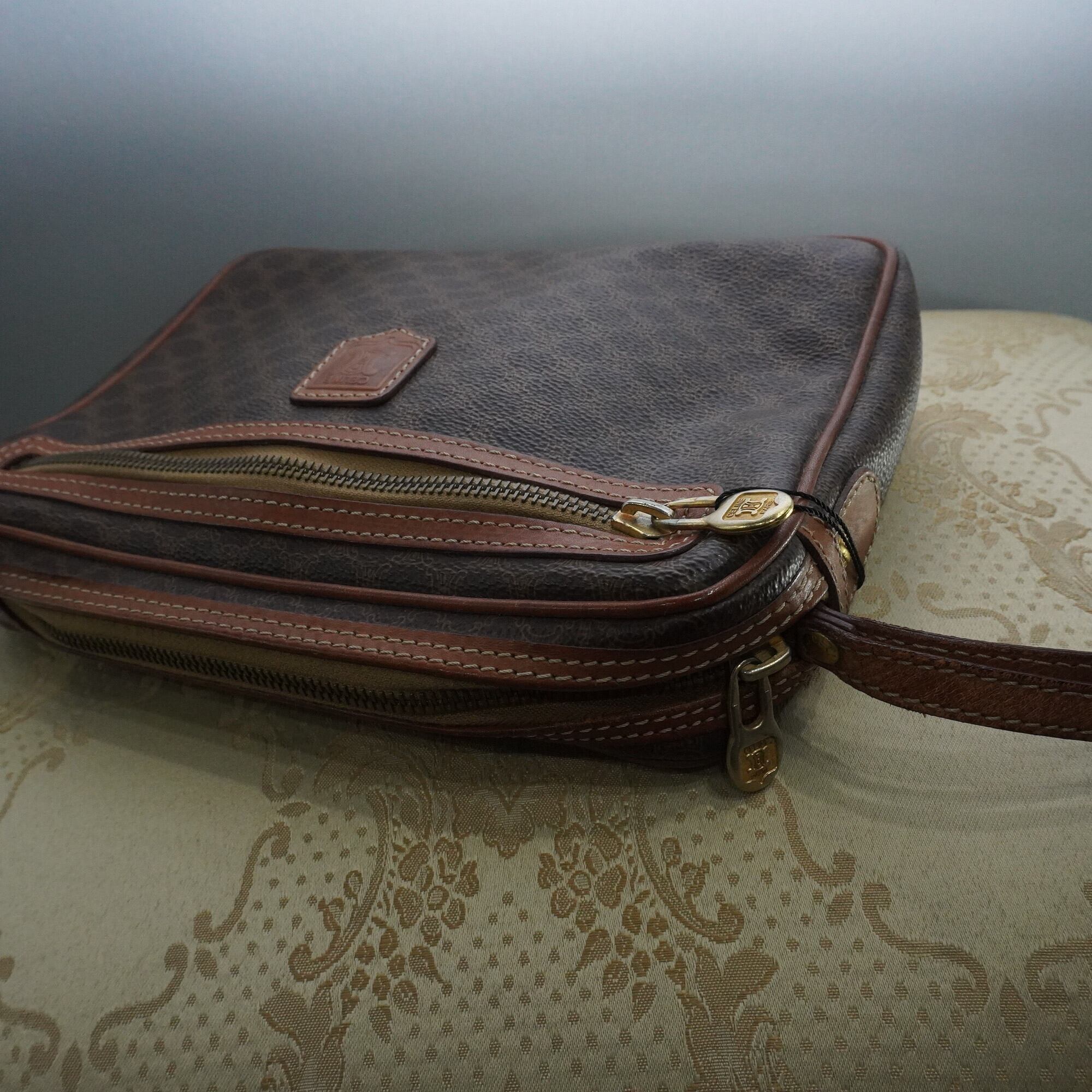 マカダム総柄が目を惹くポーチ。長めのストラップが付いているためクラッチバッグとしても使用可能。荷物の多くないちょっとした外出にもおすすめ。