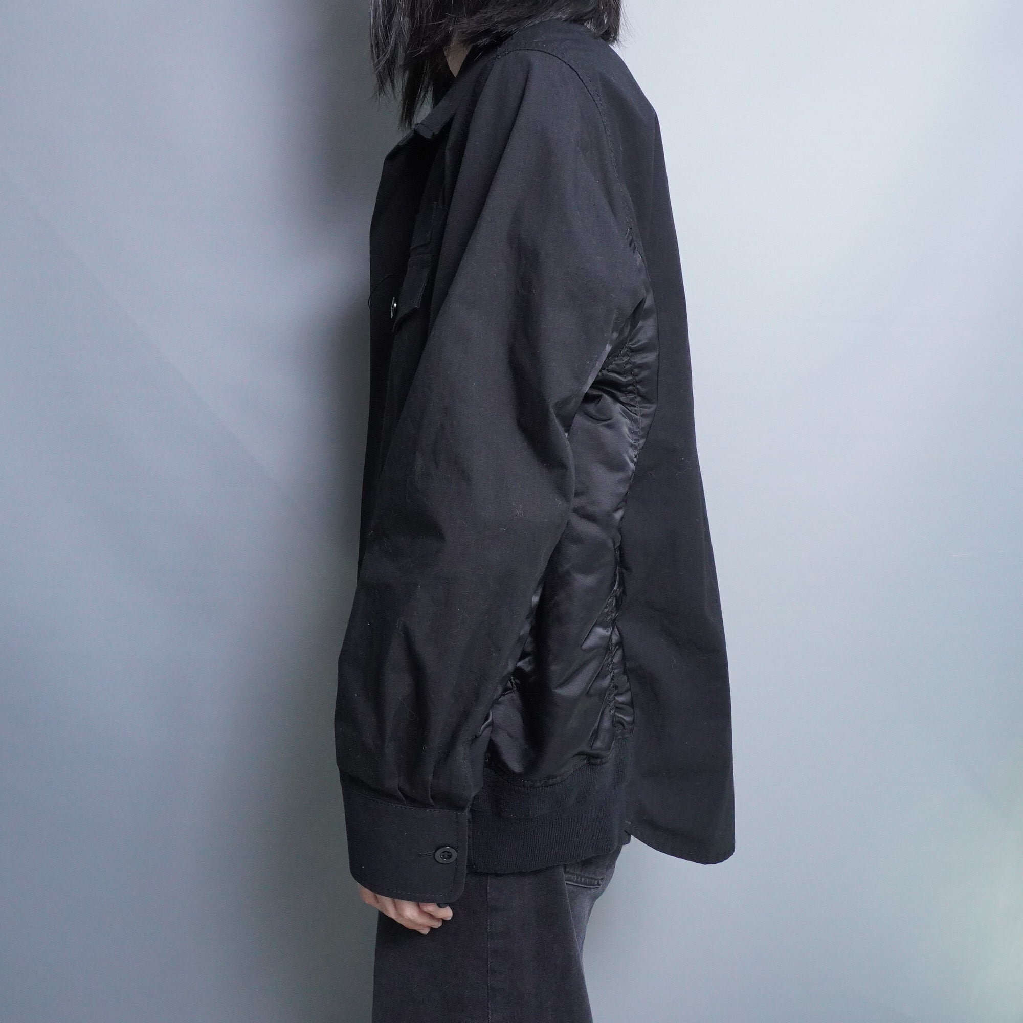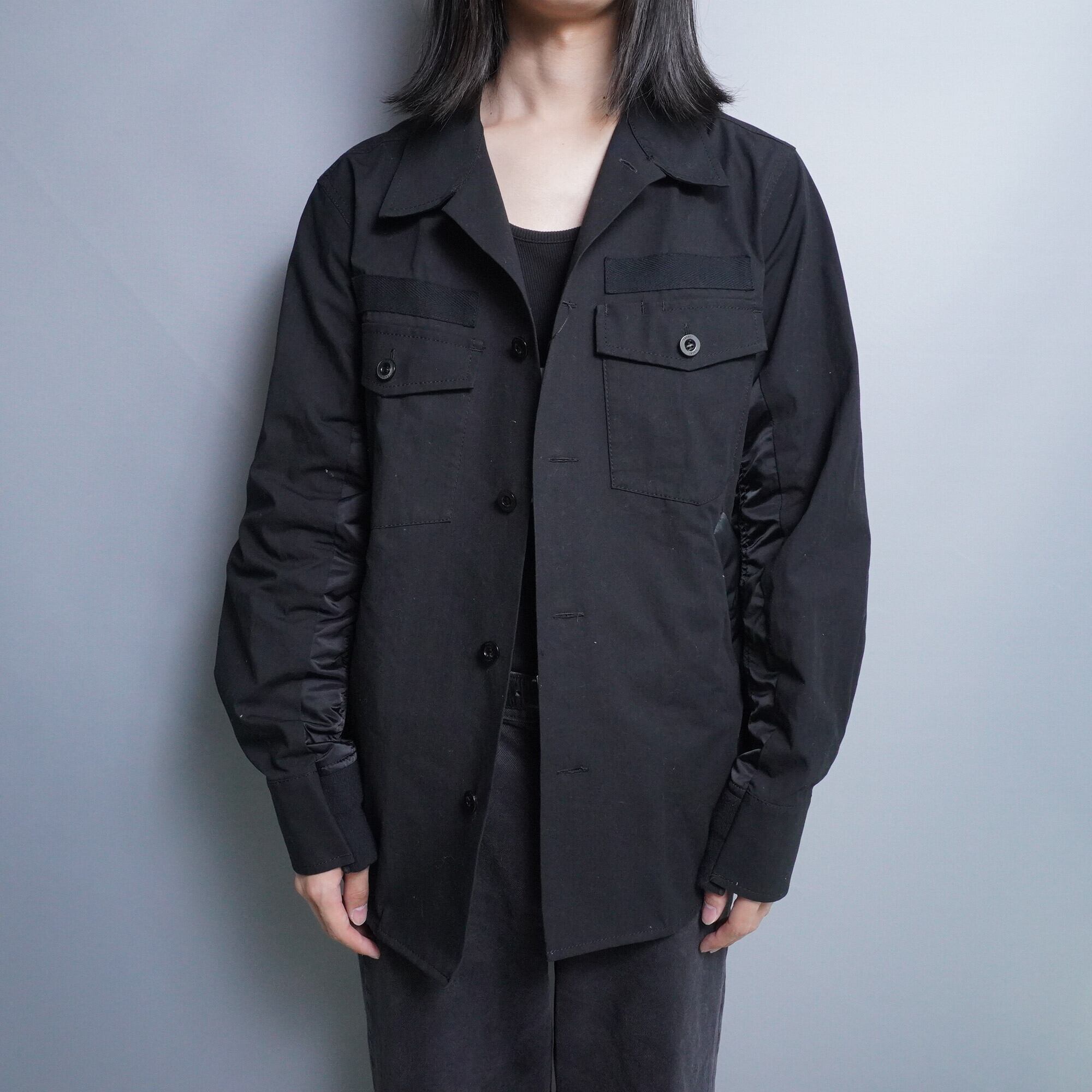 コットン×ナイロンで切り替えられたファティーグジャケットを彷彿とさせるシルエット。