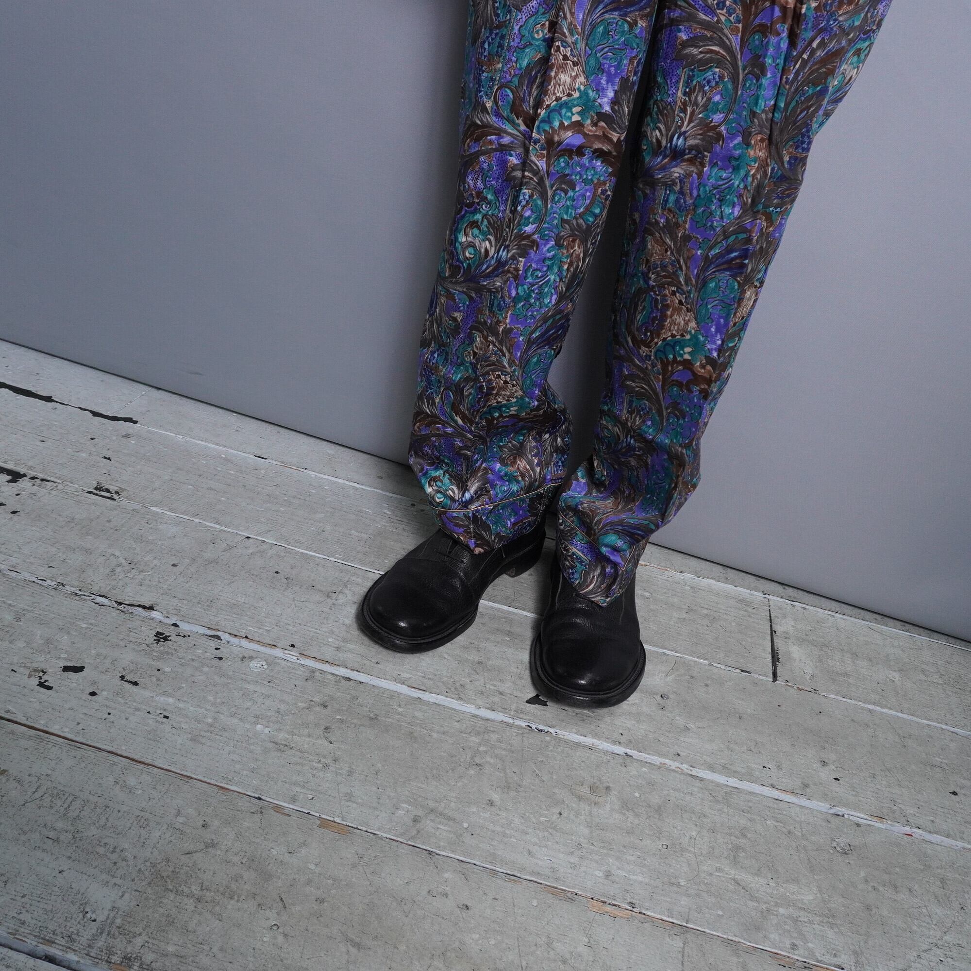 独特の柄と退廃的な雰囲気を醸し出す個性的な配色が特徴的。スリーピングセットアップならではの優しく着心地の良い逸品。