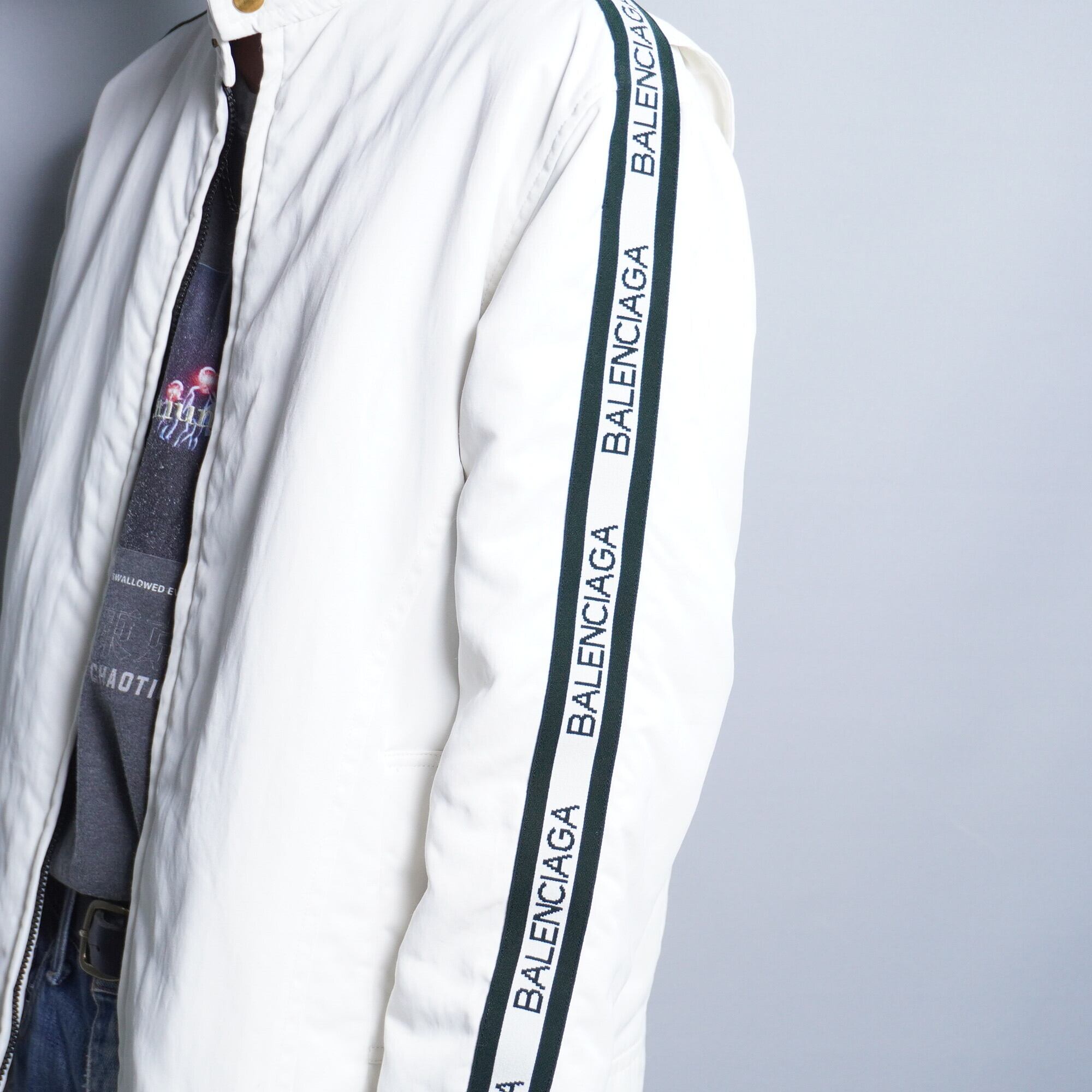 【BALENCIAGA】ロゴテープデザイン ナイロン シングルライダース ジャケット