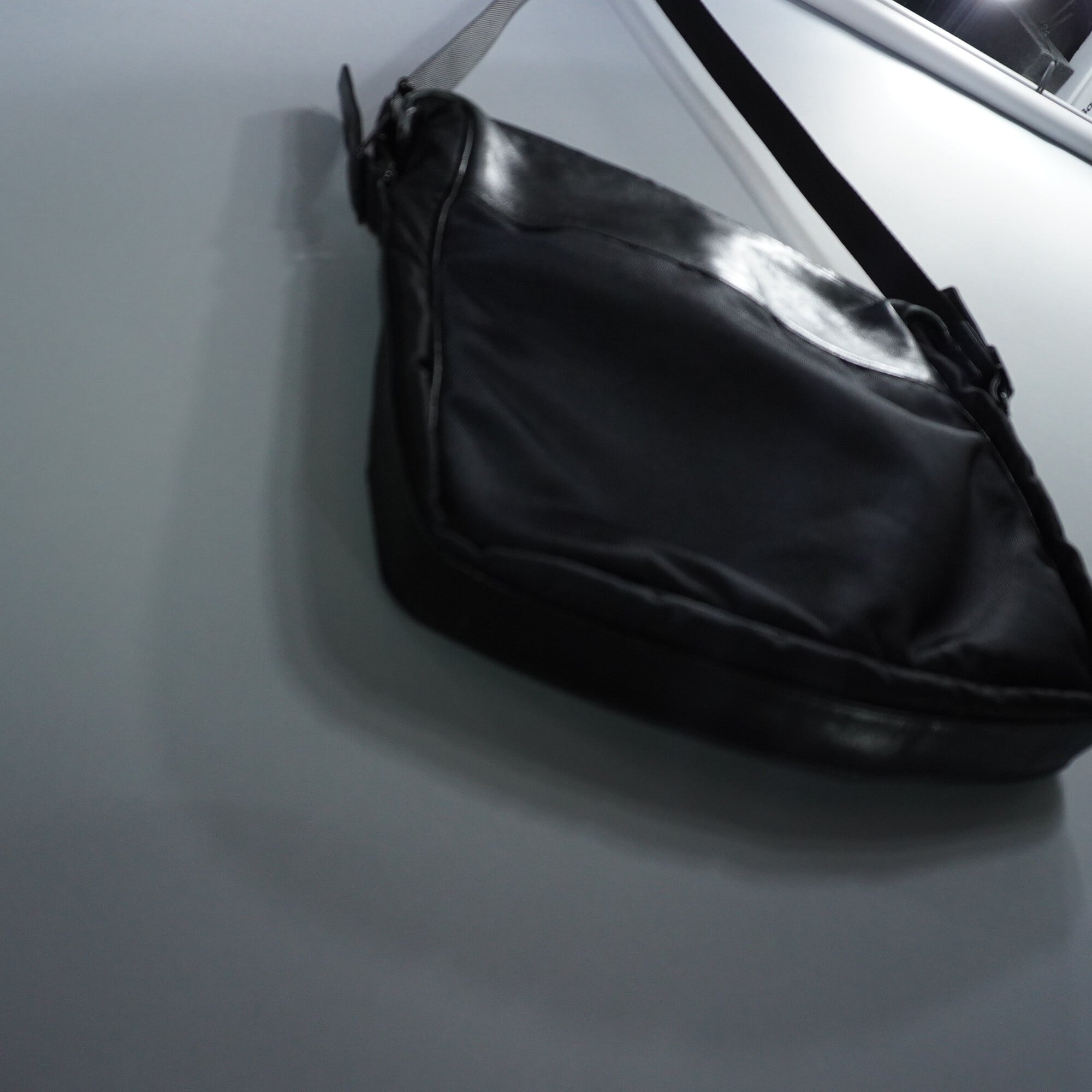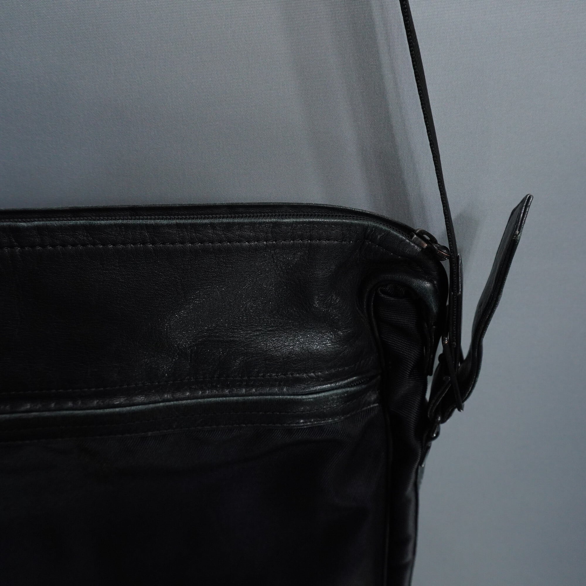 【ISSEY MIYAKE】90s レザーx ナイロン BLACKスクエアショルダー