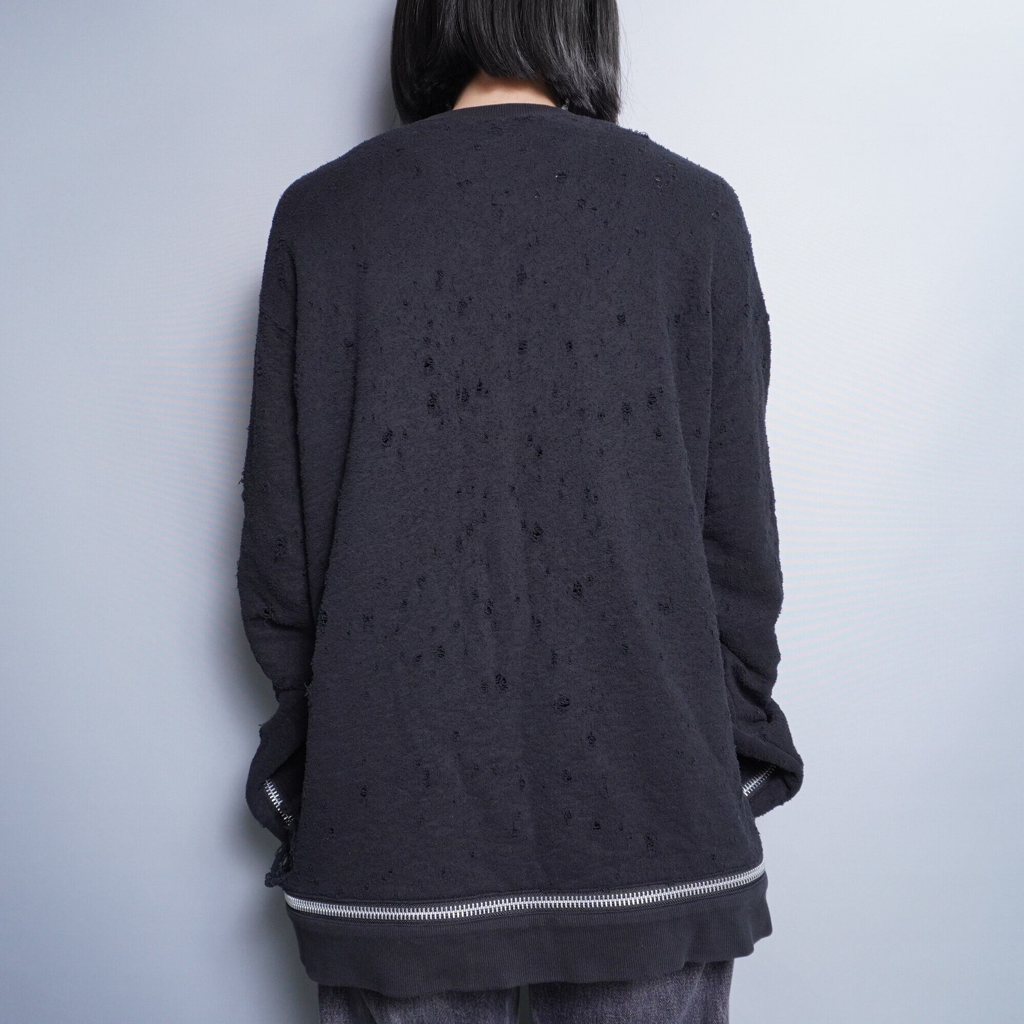 【JOHN LAWRENCE SULLIVAN】20ss Y2K "ZIP BLACKデストロイダメージニット