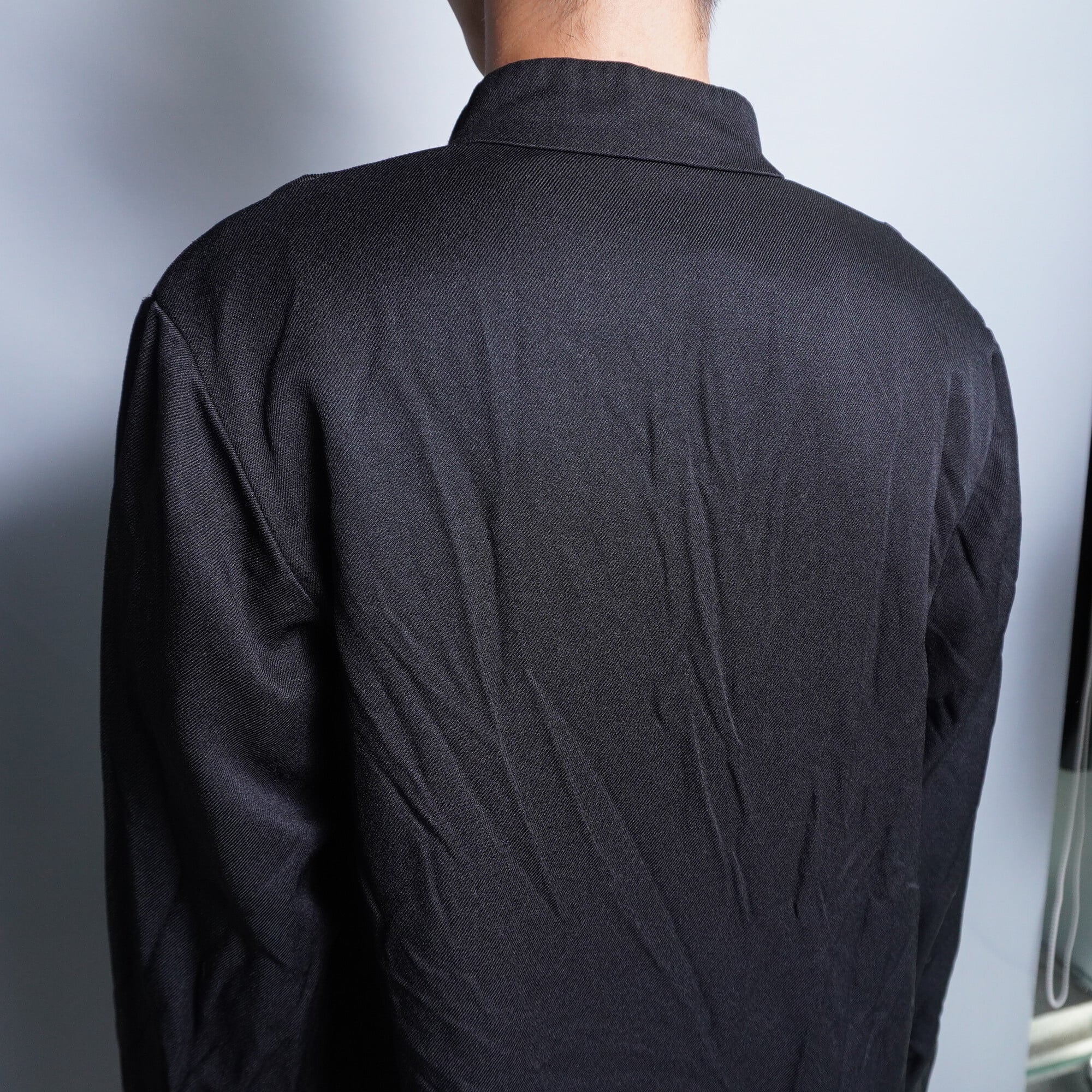 チャイナ×スタッズの異色デザイン。軽めのポリ素材で見た目よりも軽い羽織心地のため