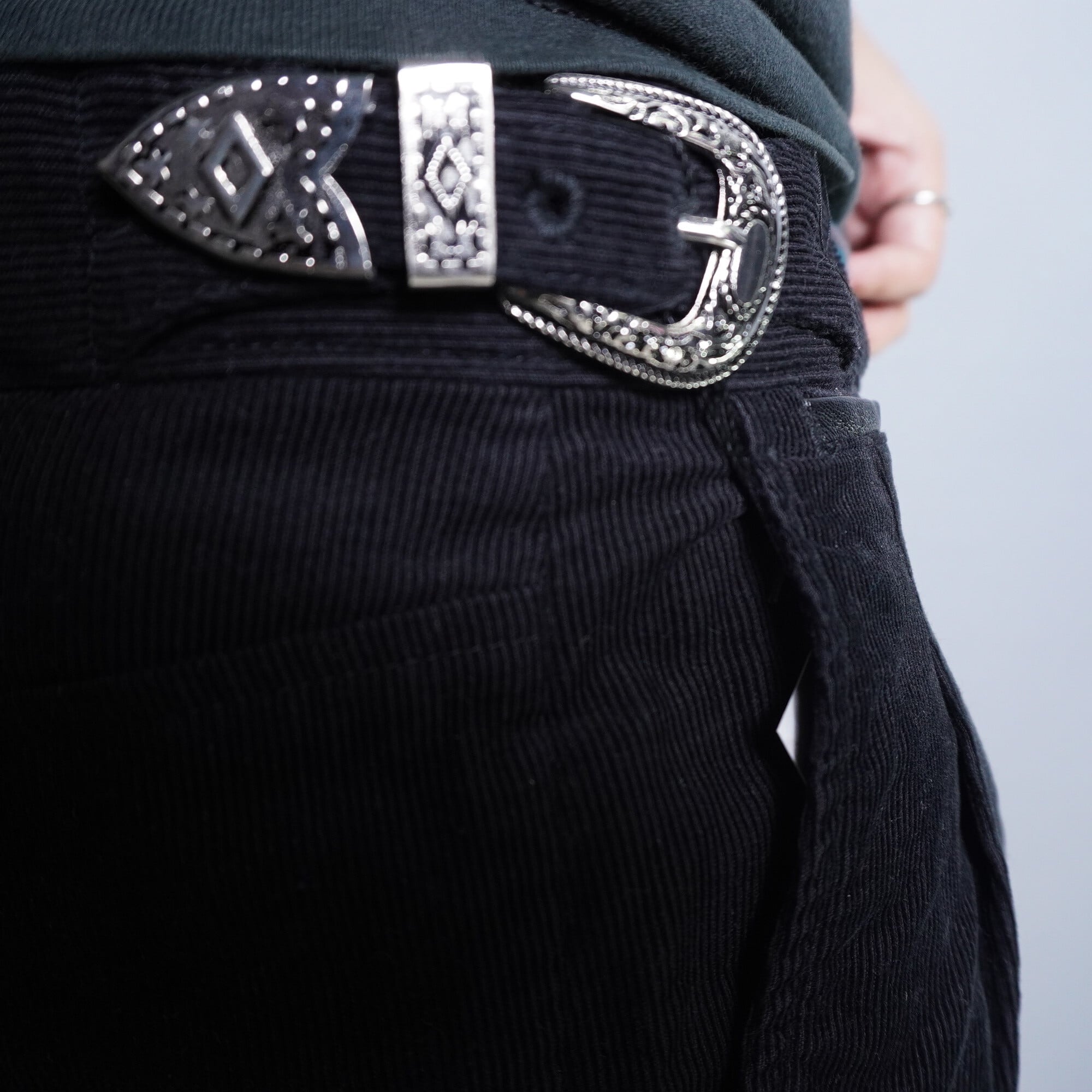 【TOGA】細コールウェスタンバックル付BLACKテーパードスラックス