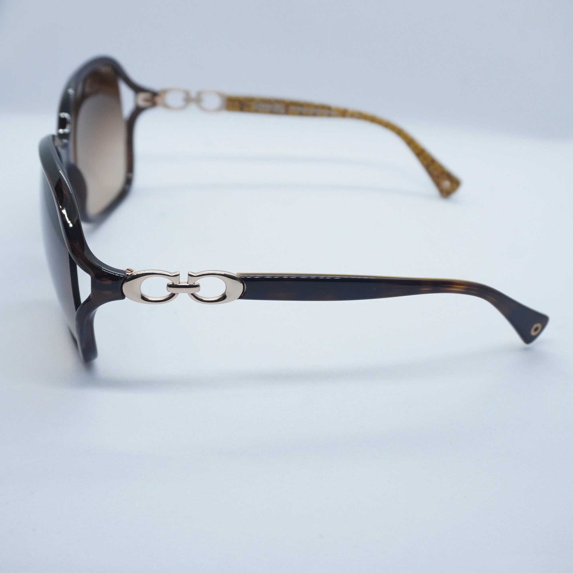 テンプルの部分にはCOACHを彷彿させる高級感溢れるデザインとなっています。