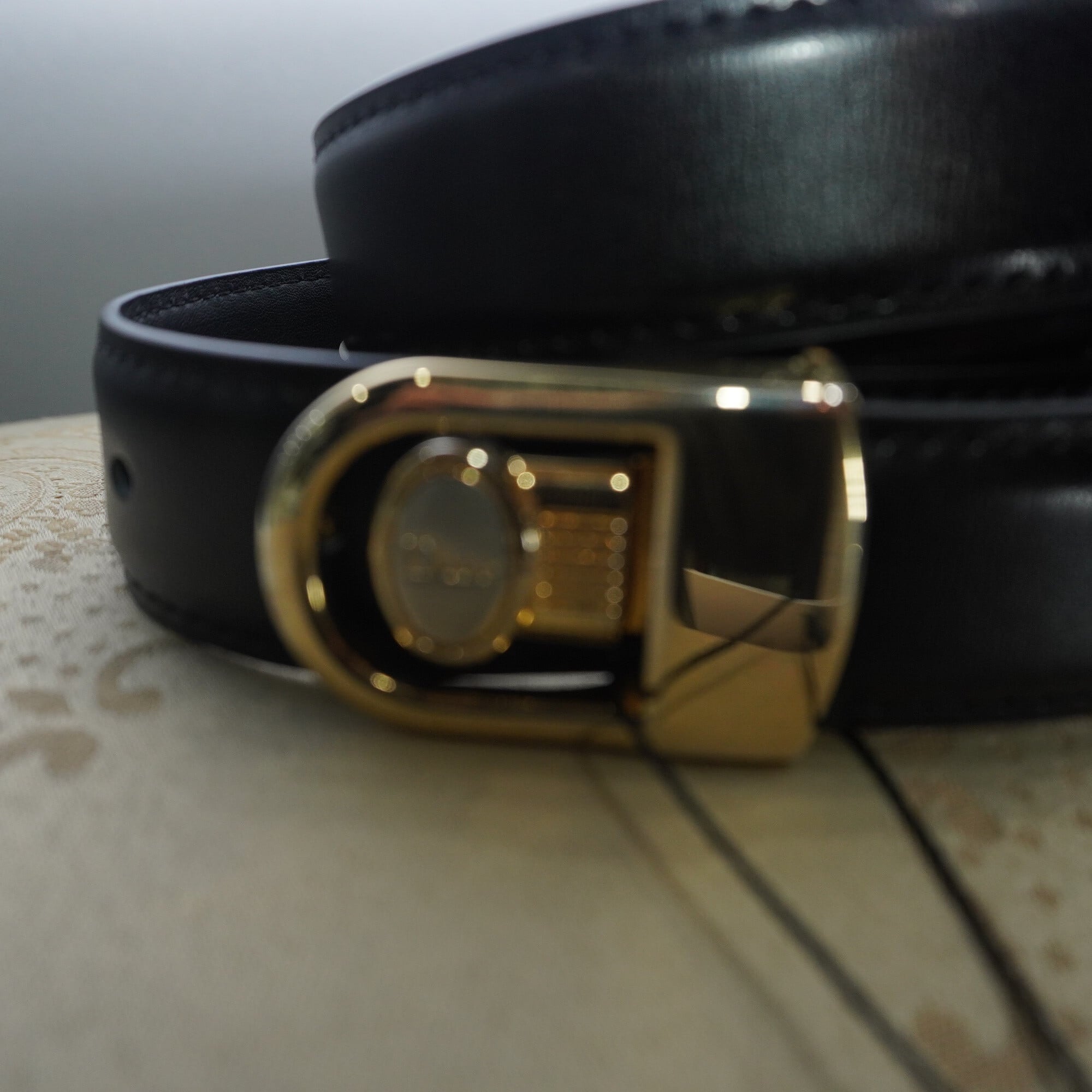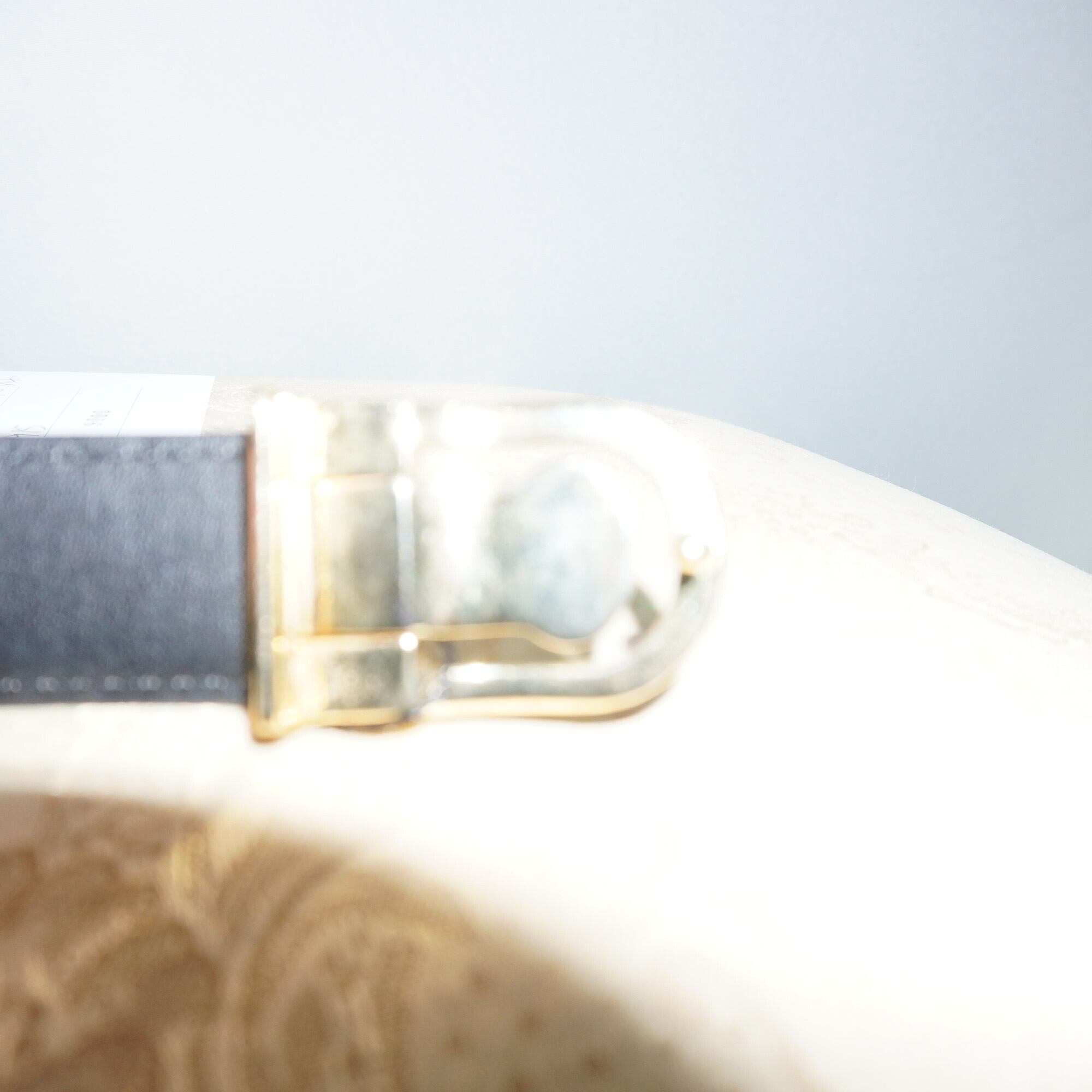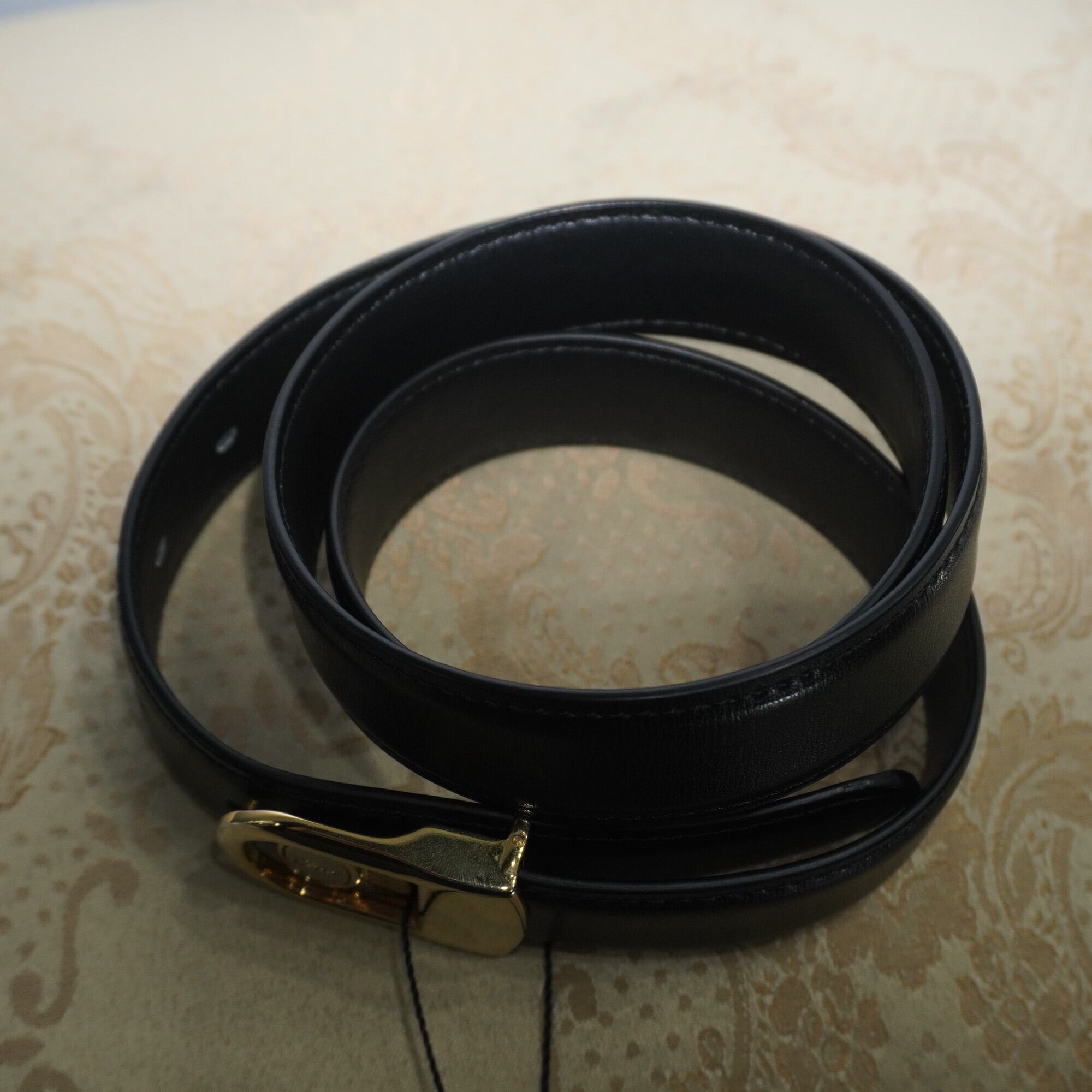 ブラックレザーにゴールドのバックル、まさに相性抜群なレザーベルトです。