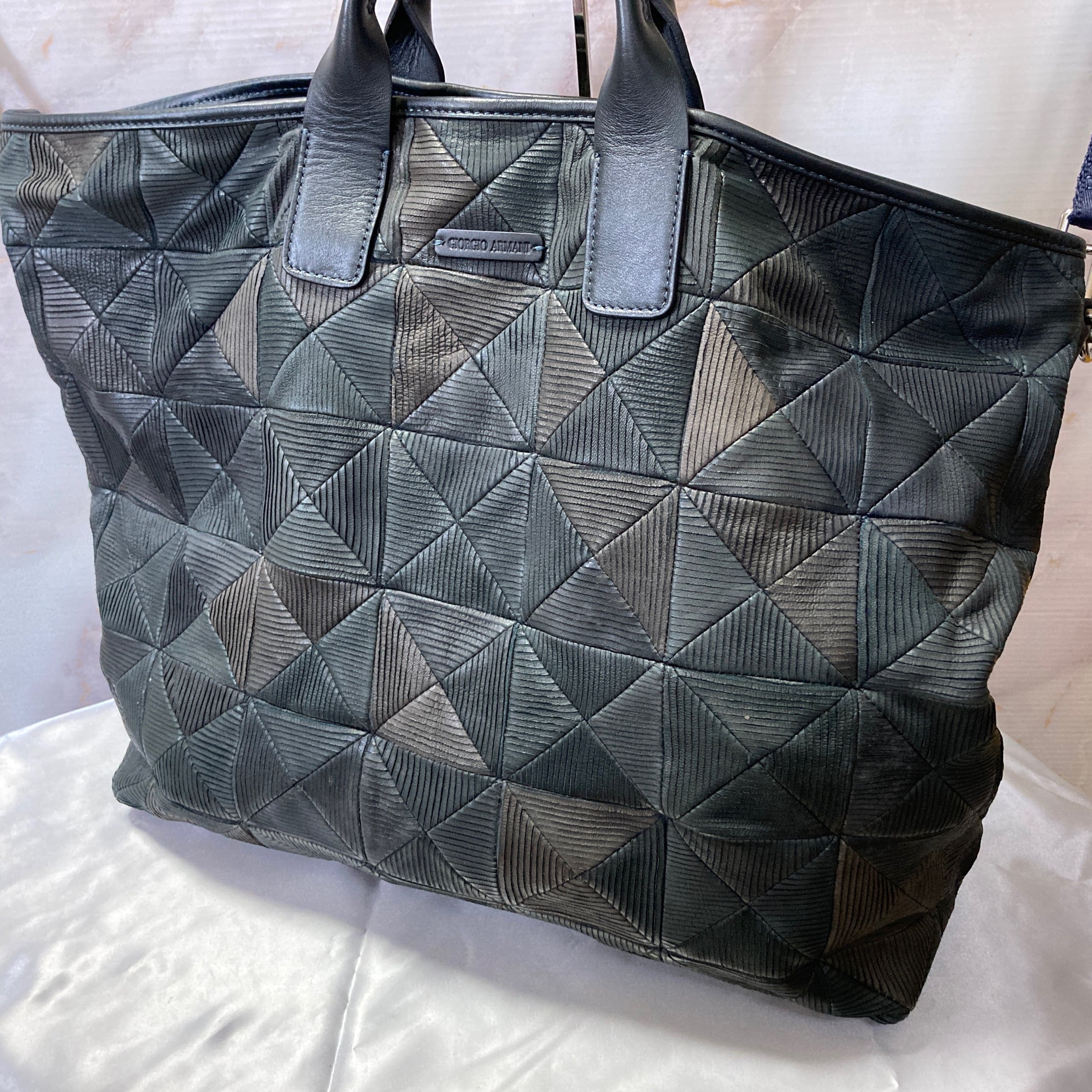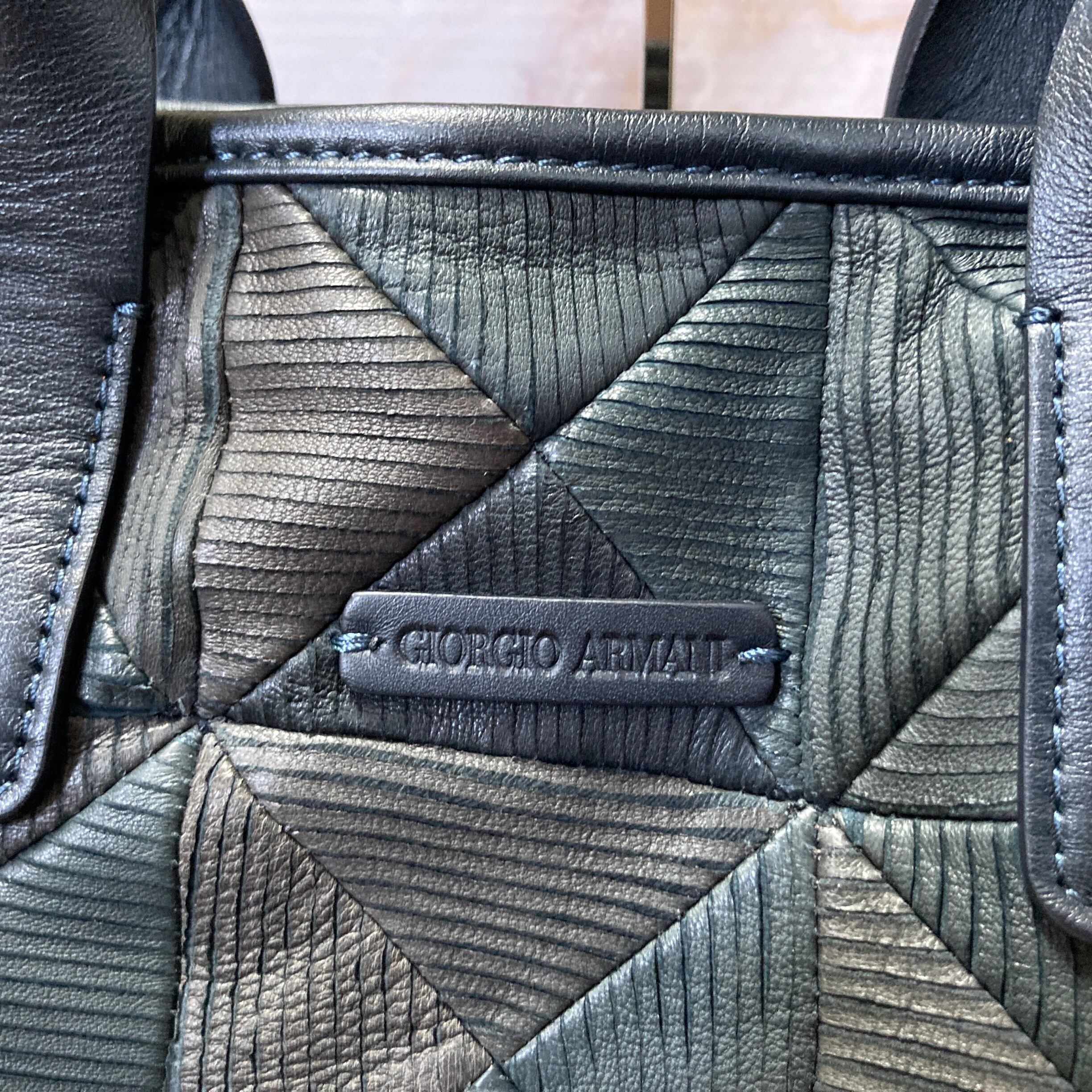 アルマーニのトートバッグです。レザーにパターン刻印、スペシャルなトートバッグ