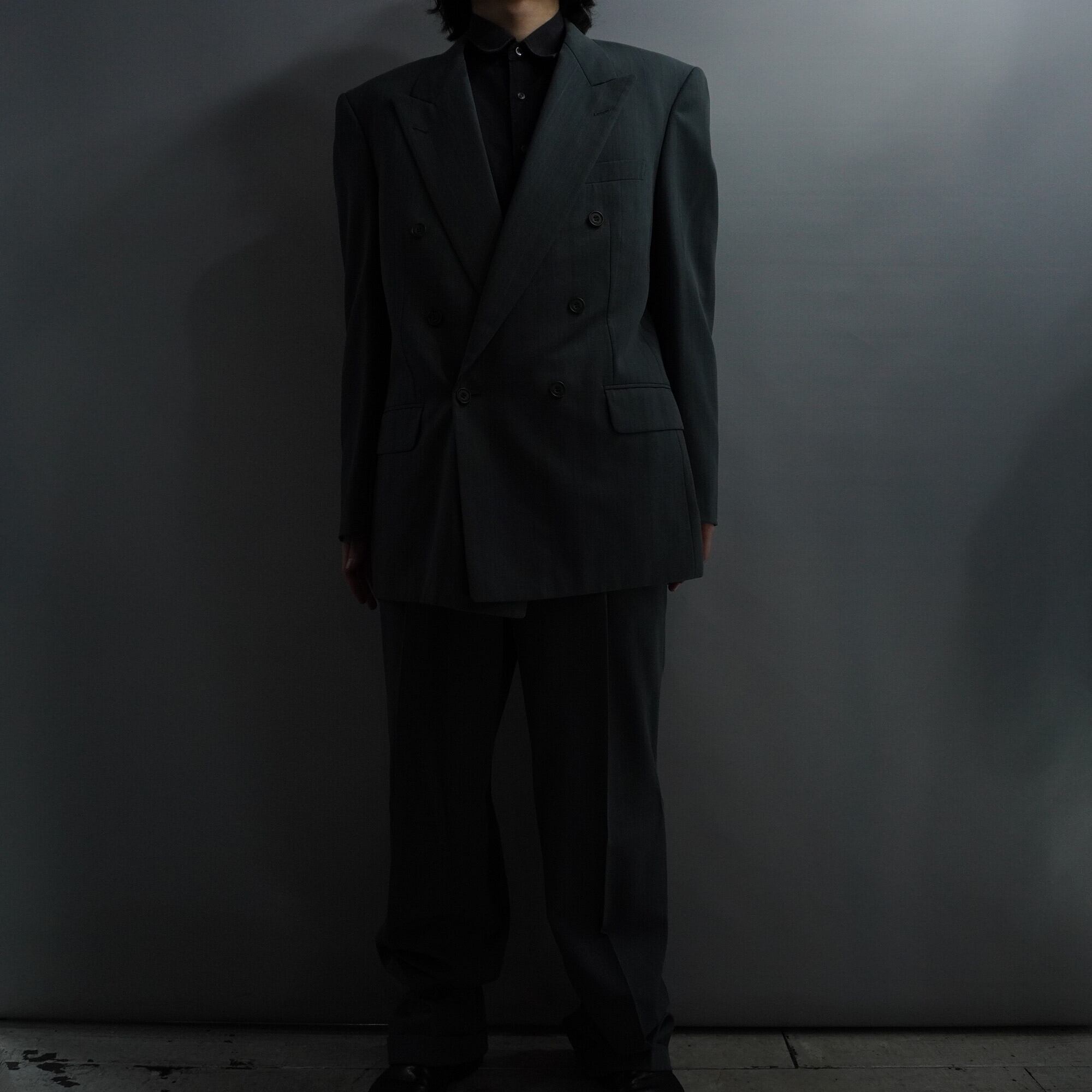 【Christian dior】ウールポリ シャドーチェック ダブルカラー セットアップ グリーン