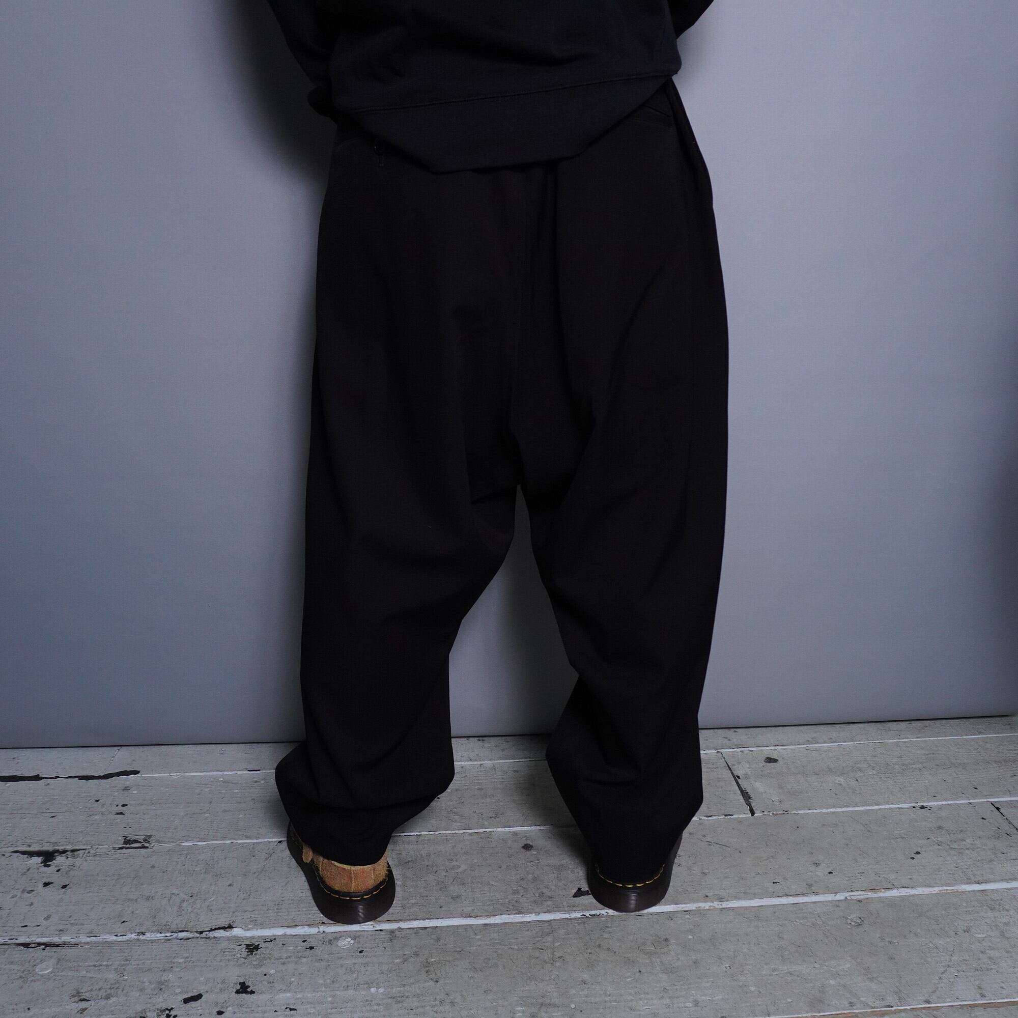 見た目以上に軽い着心地が魅力的な一本。深いサルエルシルエットで、