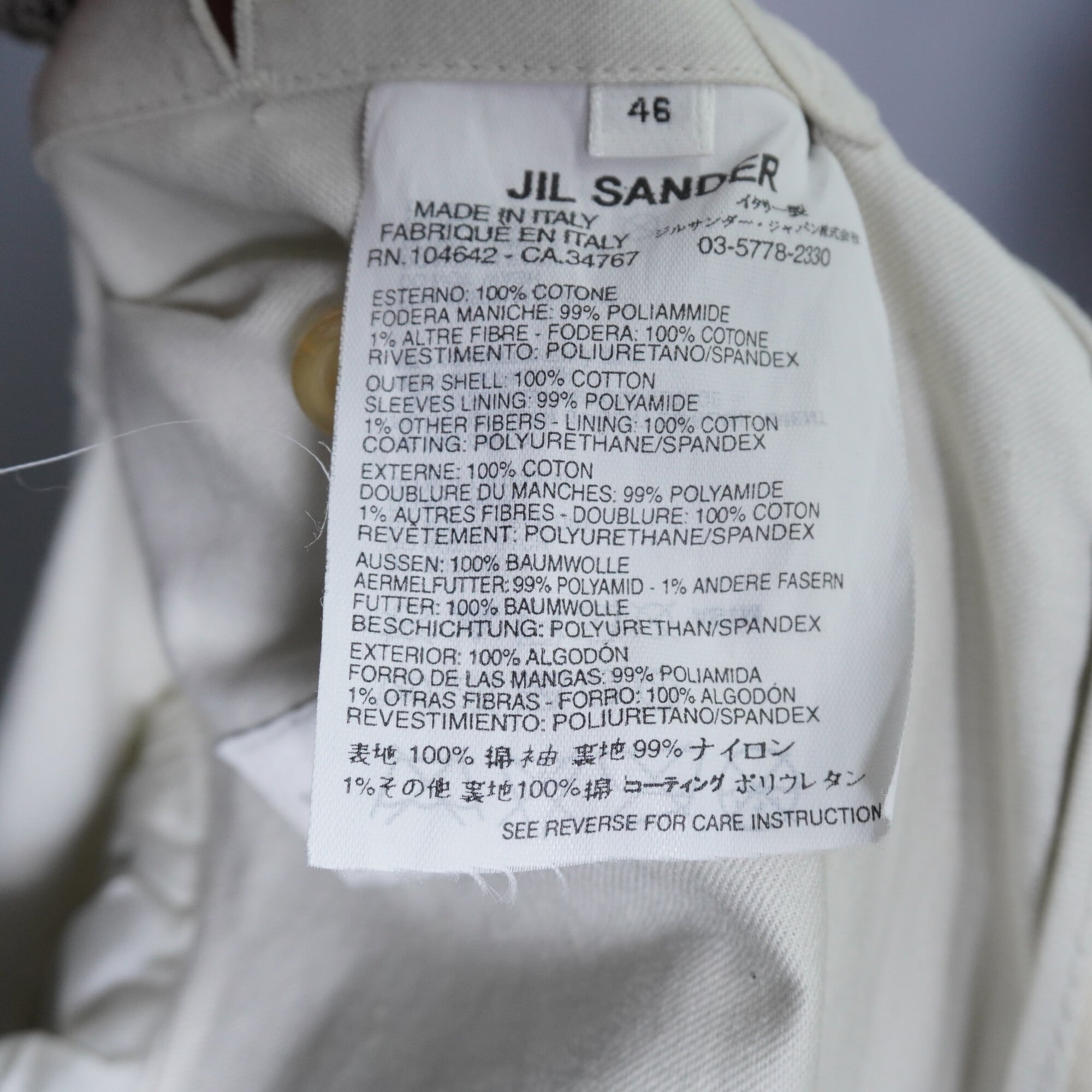 ジルサンダーの得意とするミニマルかつスタイリッシュなデザインが際立つ。ハリのあるコットンが使用されており、紙のようなパリパリとして肌触りが印象的。