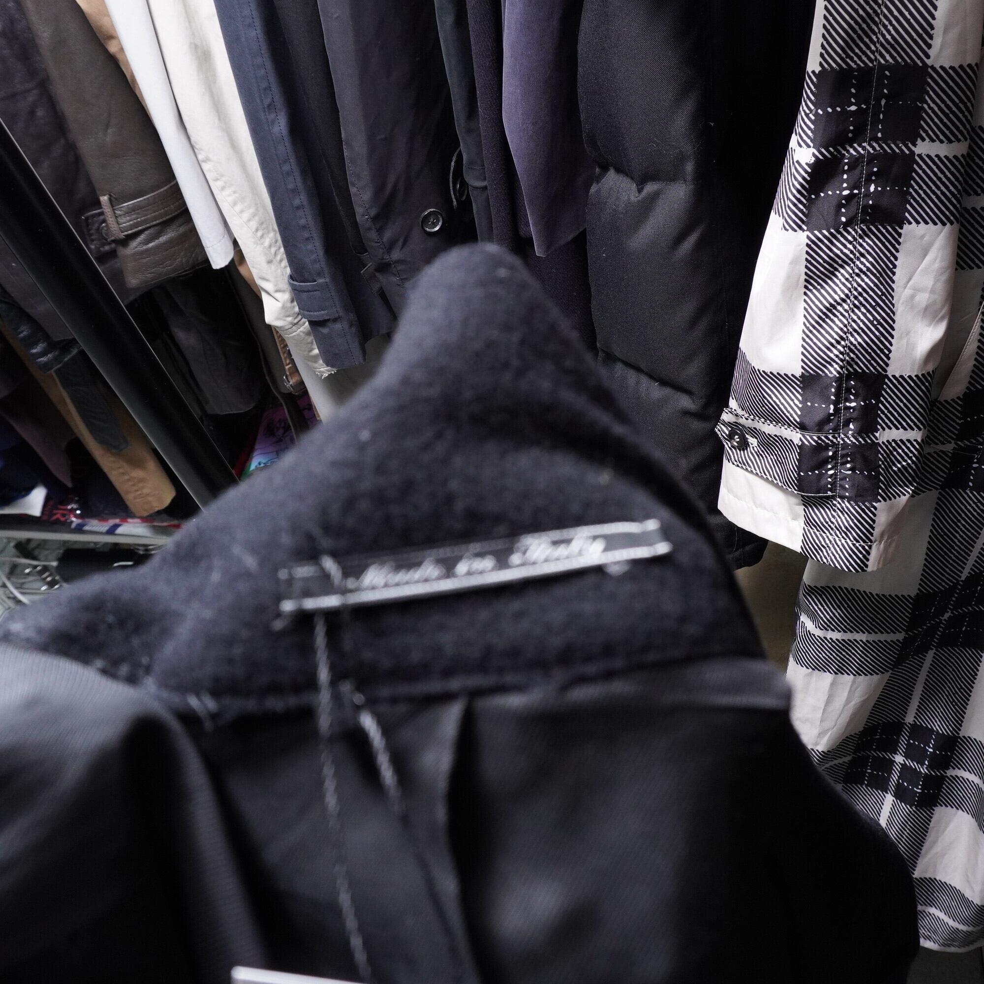 珍しい裏地なしのコート。フェルトのような生地感でさらっと羽織ることができます。珍ストラップを用いて立襟にできるのも魅力的な一着。